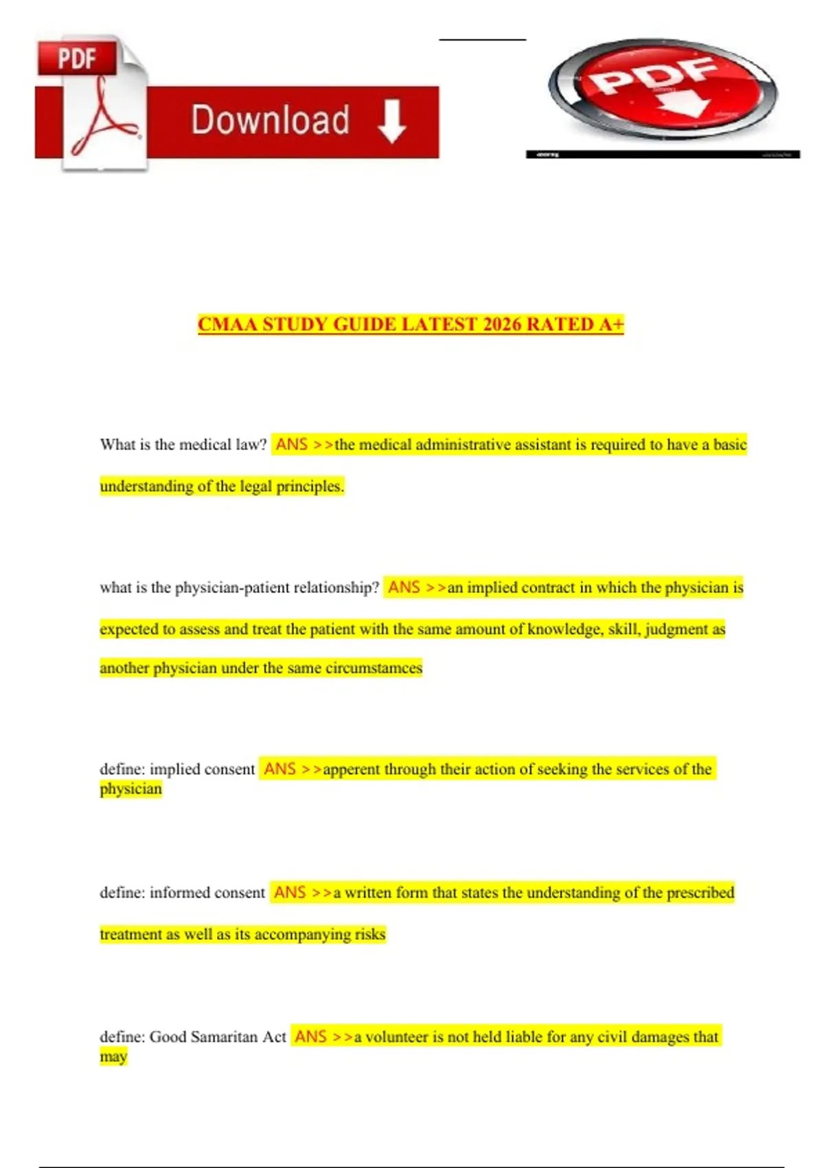 CMAA Study Guide 2026 – Complete and Updated Exam Preparation Material, Rated A+ CMAA Exam Prep – Brand New Practice Exam with Complete Questions and Correct Answers, CMAA Preparation Material CMAA Exam 1 – Complete Questions and Correct Answers, Brand New CMAA Practice Material
