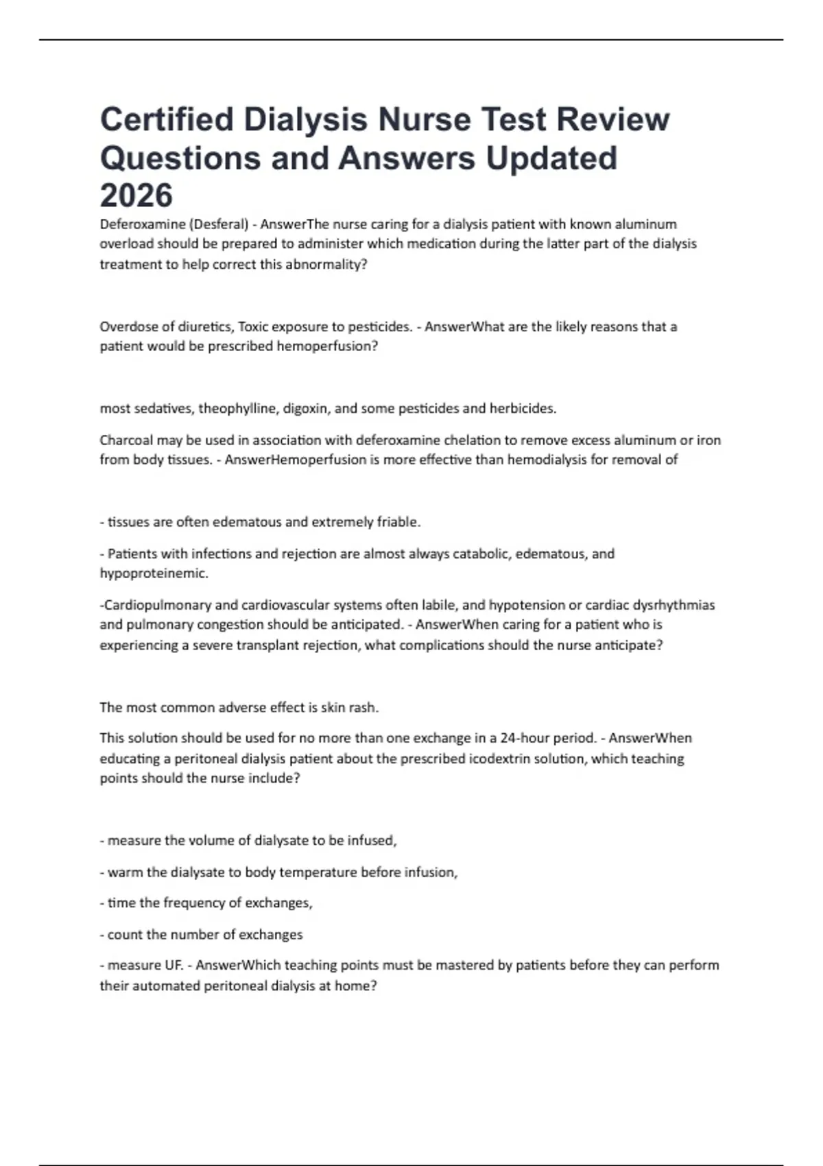 What every Dialysis Nurse needs to know. Questions and Answers Updated 2026