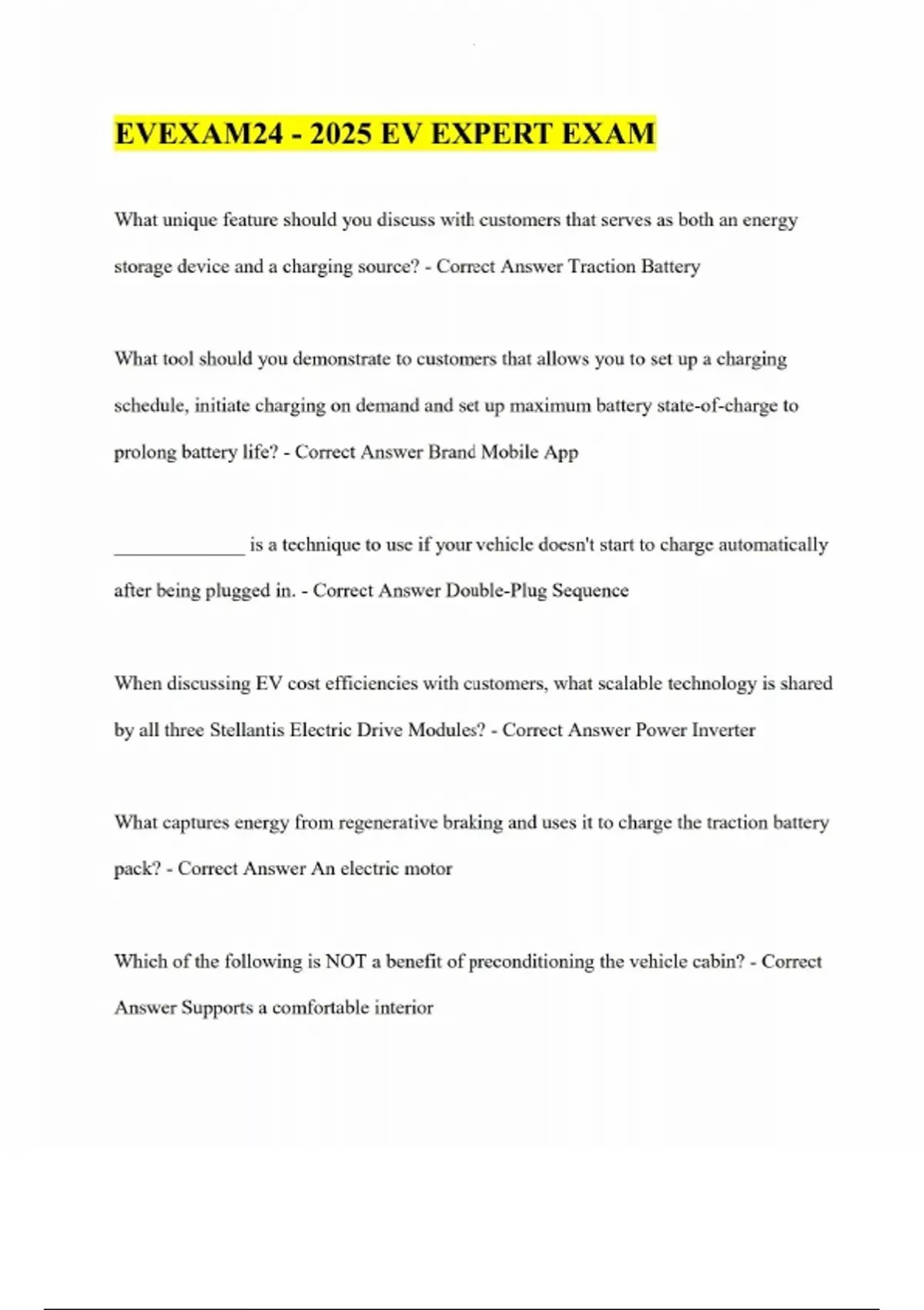 EVEXAM24 - 2025 EV EXPERT EXAMS EVEXAM24 - 2026 EV EXPERT NEW EXAM ||QUESTIONS WITH 100% VERIFIED CORRECT ANSWERS