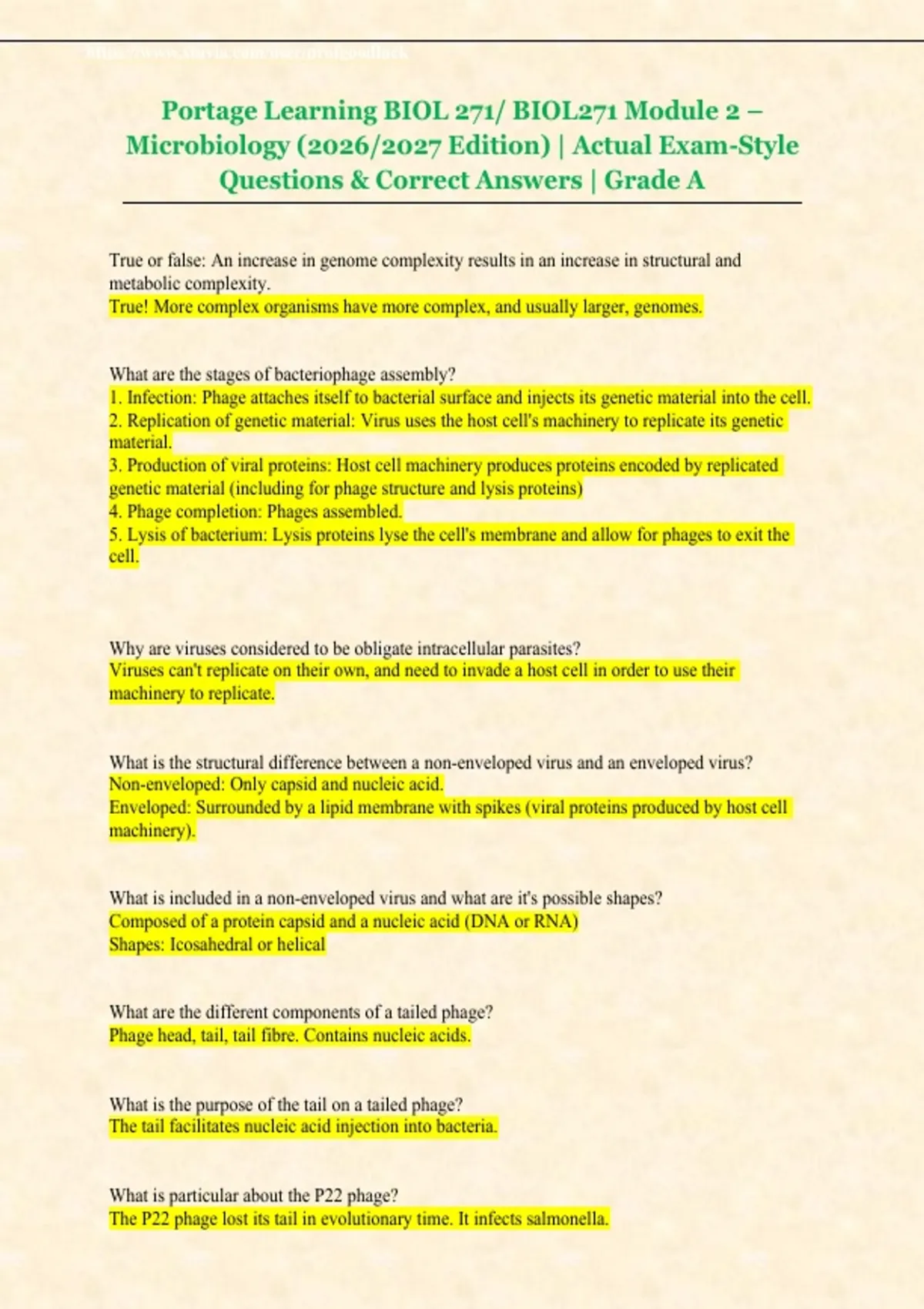 BIOL 271/ BIOL271 Microbiology with Lab (Portage Learning) Modules 1–2 Exams | Complete Study Bundle 2026/2027 Practice Questions & Solutions | Verified Answers | Grade A
