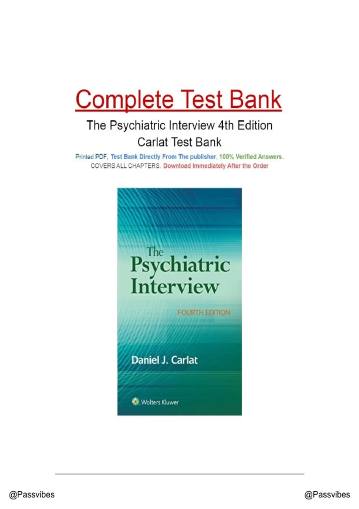 Test Bank - The Psychiatric Interview 4th and 5th Edition by Daniel J. Carlat | All Chapters, Latest Edition.