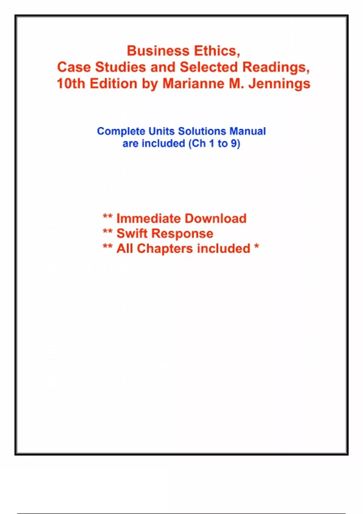 Test Bank & Solutions Manual - Business Ethics, Case Studies and Selected Readings, 10th Edition by Marianne M. Jennings