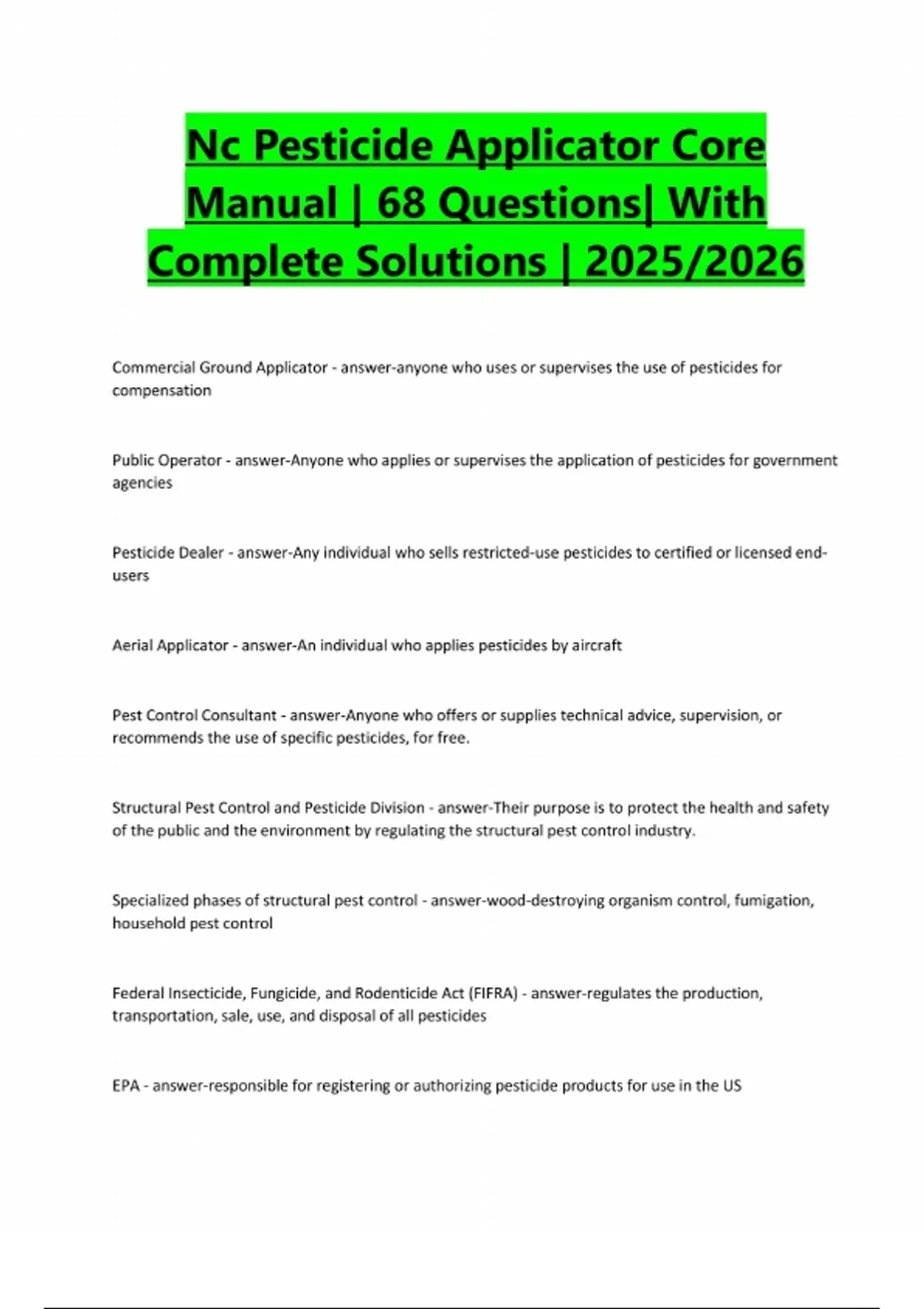 Nc Pesticide Applicator Core Manual | 68 Questions| With Complete Solutions | 2025/2026
