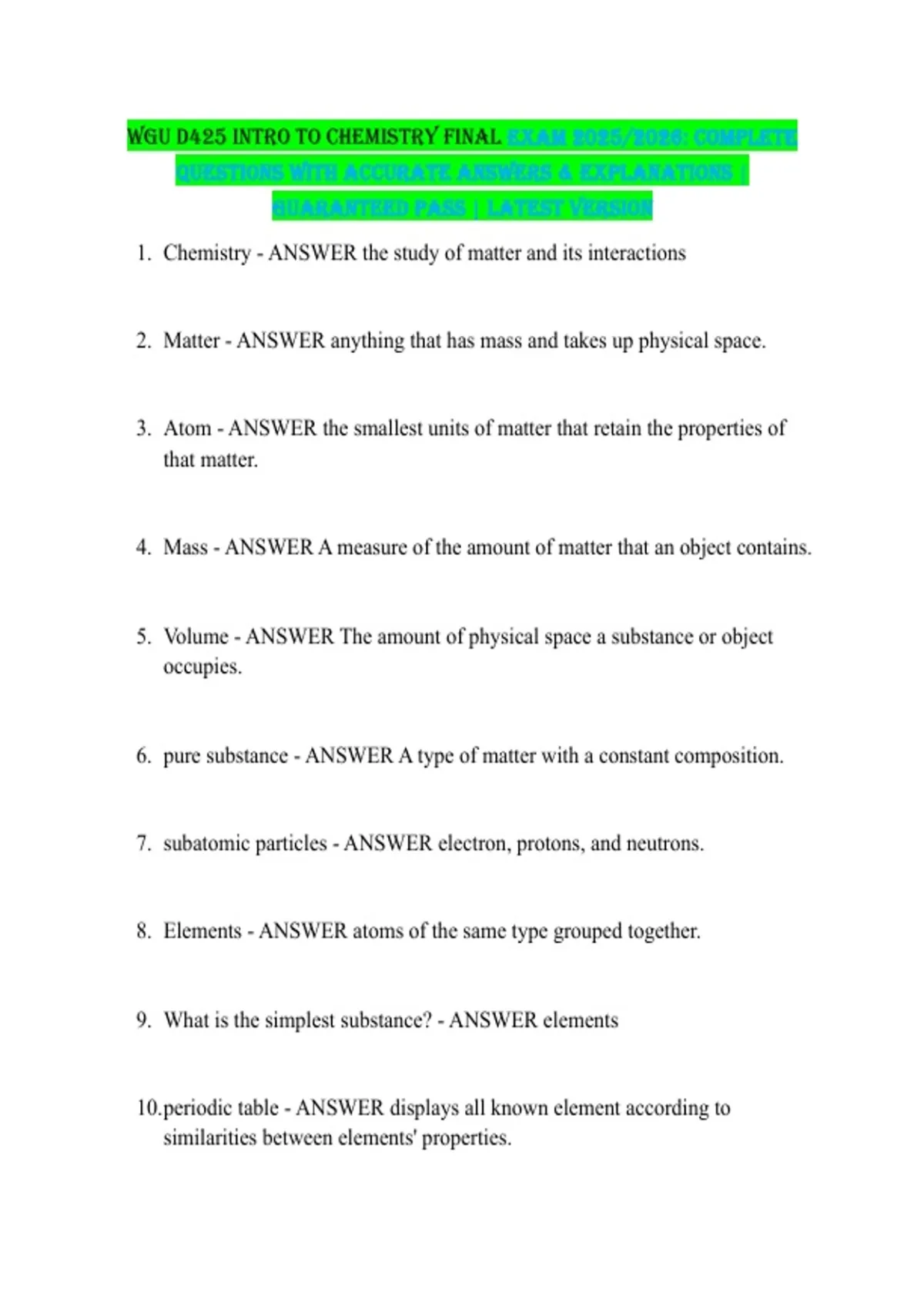 CHEM 210 BIOCHEMISTRY (CHEM210), AQA A Level Chemistry Exam 2026 and WGU D425 INTRO TO CHEMISTRY FINAL Exam 2025/2026