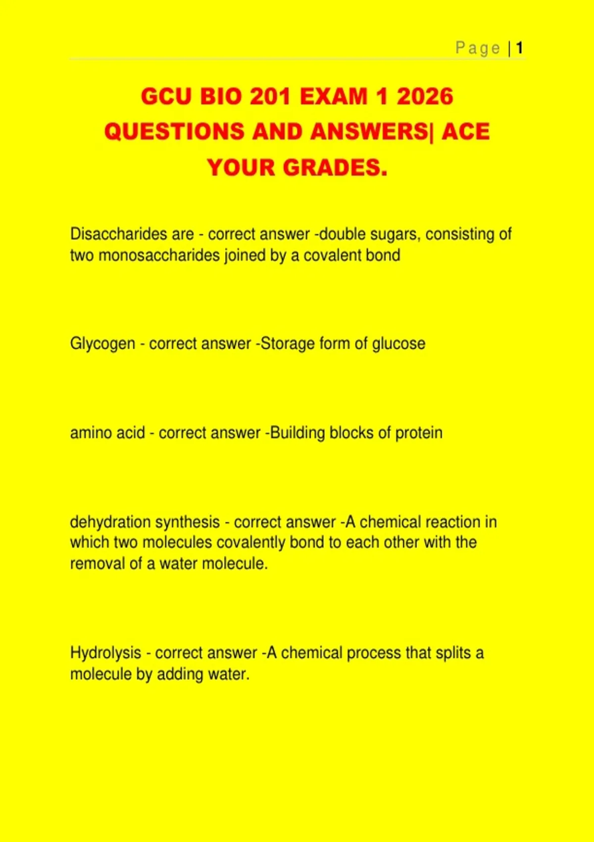 GCU BIO 201 PACKAGED EXAMS 2026 QUESTIONS AND ANSWERS| ACE YOUR GRADES.