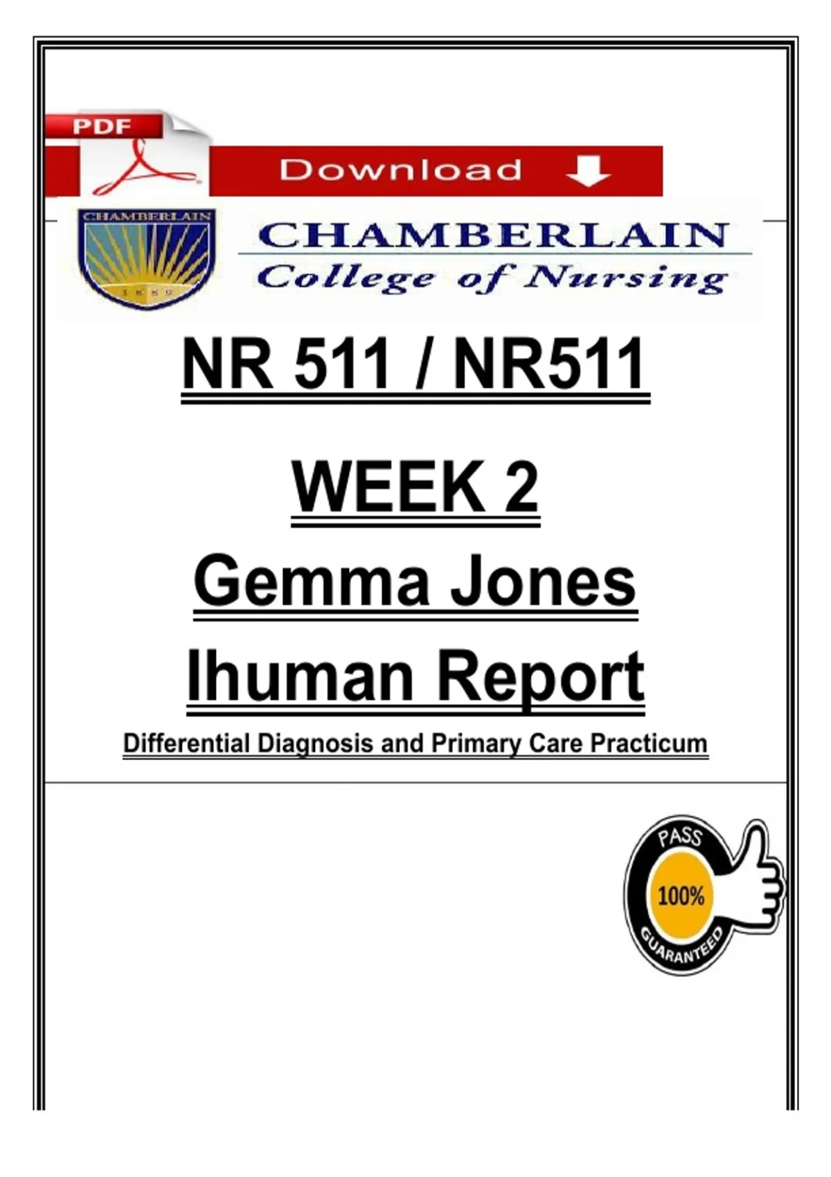 NR 511 Week 2 iHuman Report PDF | Chamberlain Differential Diagnosis Practicum