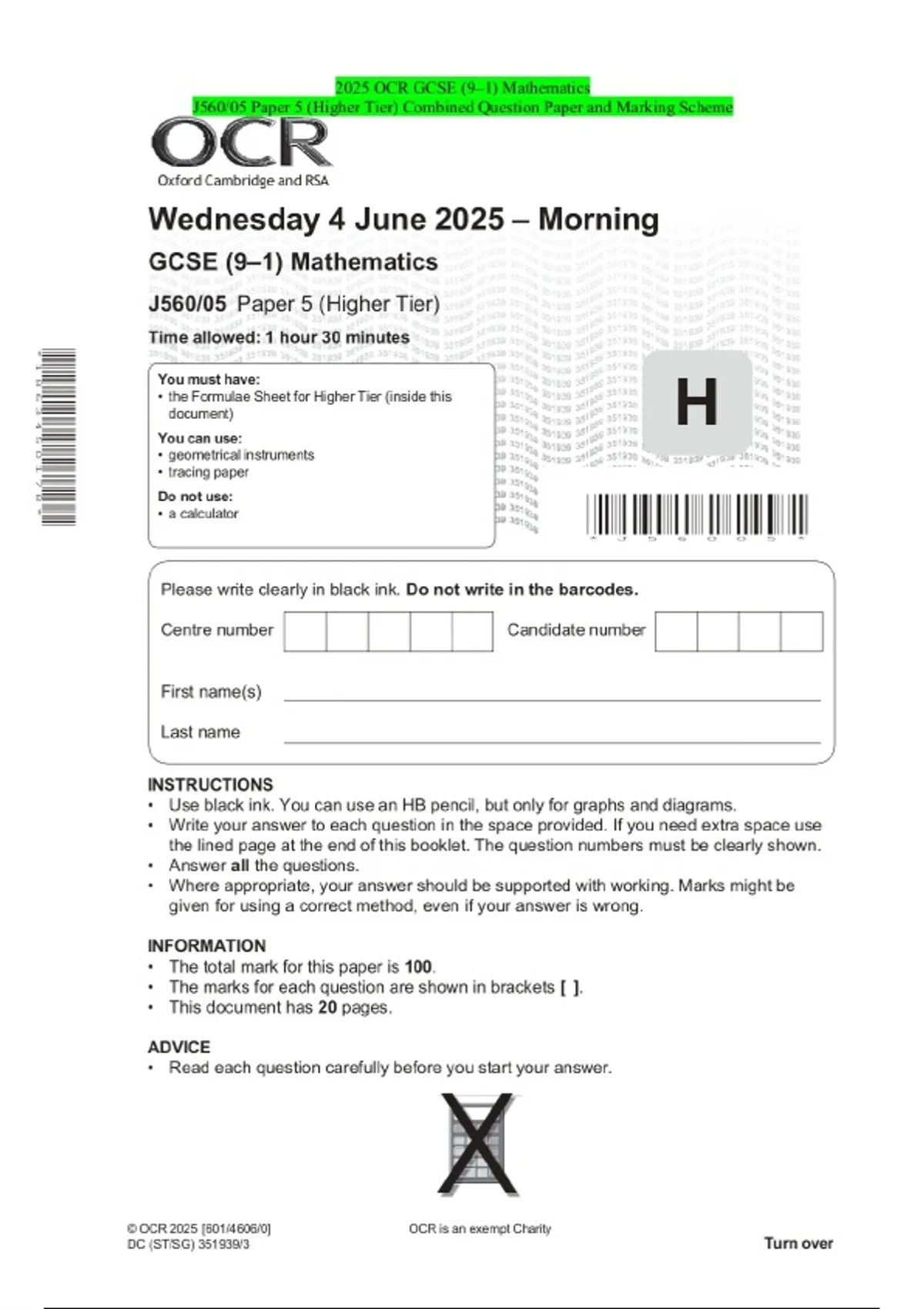 2025 OCR GCSE (9–1) Physics B (Twenty First Century Science) J259/03 Breadth in physics (Higher Tier) Combined Question Paper and Marking Scheme 2 Exam (elaborations) 2025 OCR GCSE (9–1) Physics B (Twenty First Century Science) J259/04 Depth in physics (Higher Tier) Combined Question Paper and Marking Scheme 3 Exam (elaborations) 2025 OCR GCSE (9