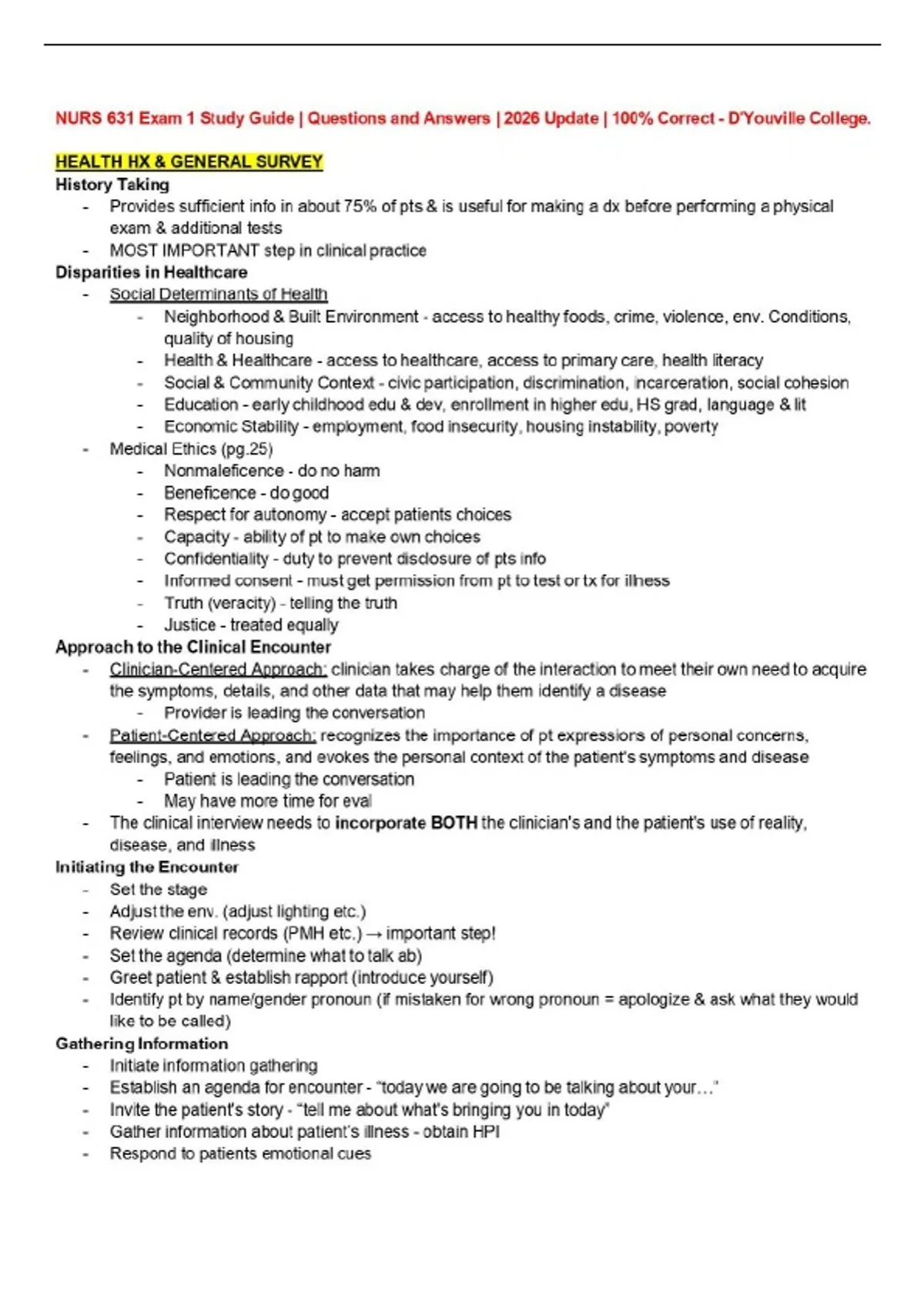 NURS 631 Exam 1 Study Guide | Questions and Answers | 2026 Update | 100% Correct - D'Youville College.