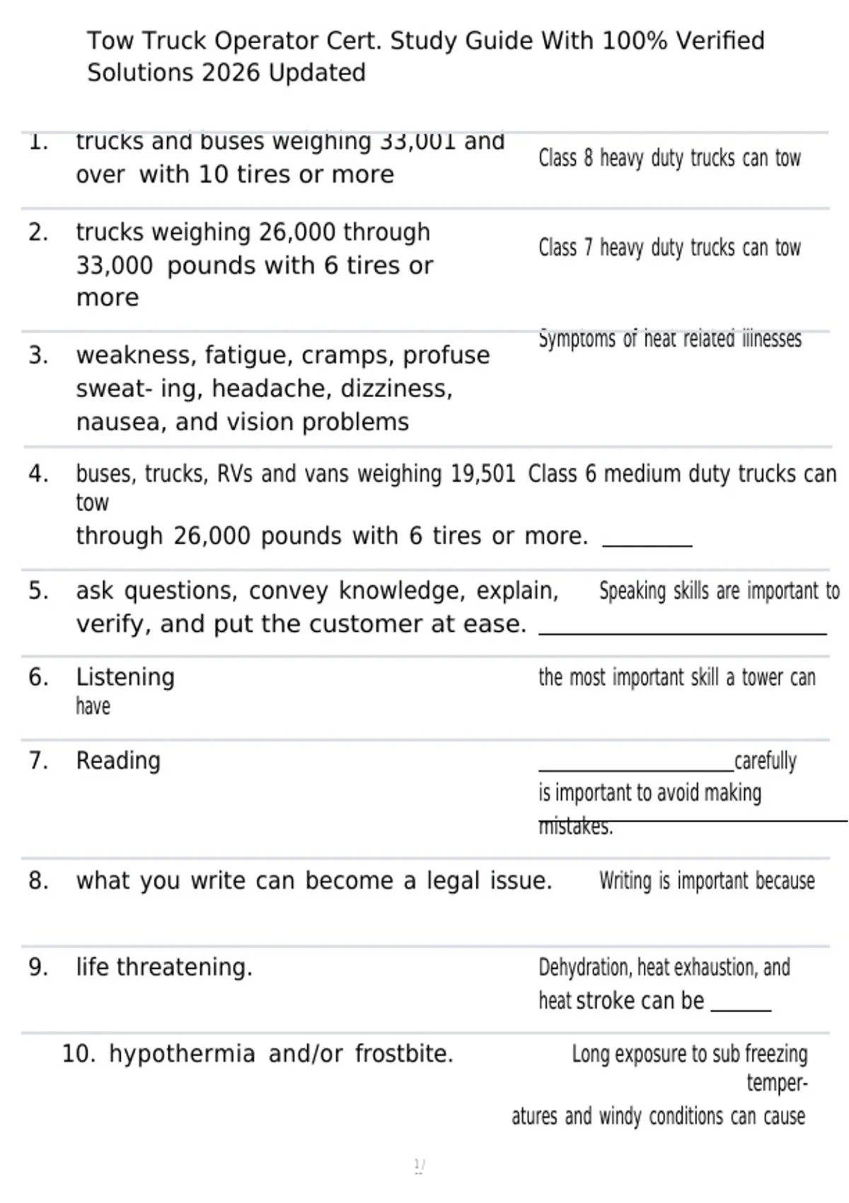 Tow Truck Endorsement Test With Complete Solutions | Latest Updated NYS Tow Truck Endorsement Practice Test 7 Questions And Answers Verifie100% Correct 2026!!! TRAA Towing and Recovery Association of America National Driver Certification Complete Questions With Solutions 2026| Updated