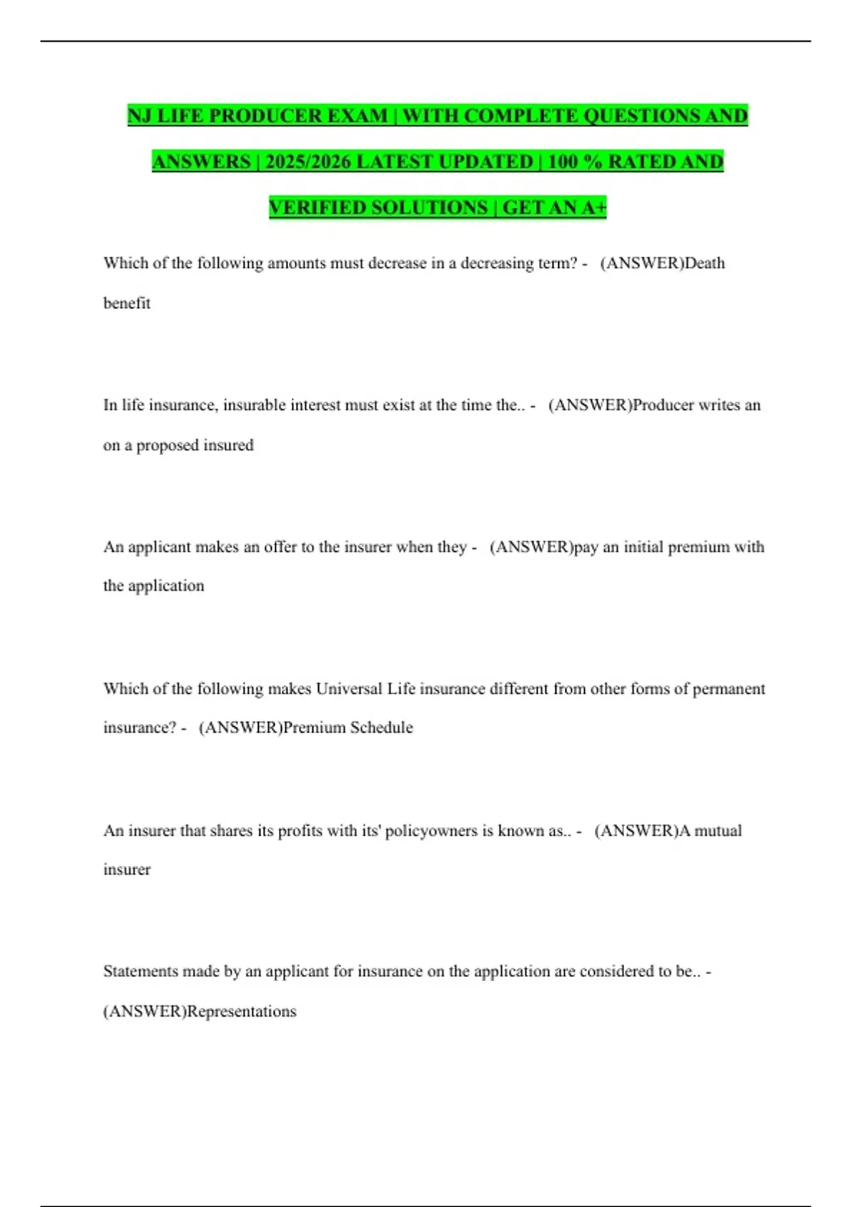 PACKAGE DEAL FOR NJ ACCIDENT AND HEALTH PRODUCER INSURANCE EXAM |COMPLETE AND GRADED QUESTIONS AND ANSWERS 2026 LATEST UPDATED | 100% GRADED CORRECT | 100% GUARANTEED TO PASS | GET A+| 3 ITEM S