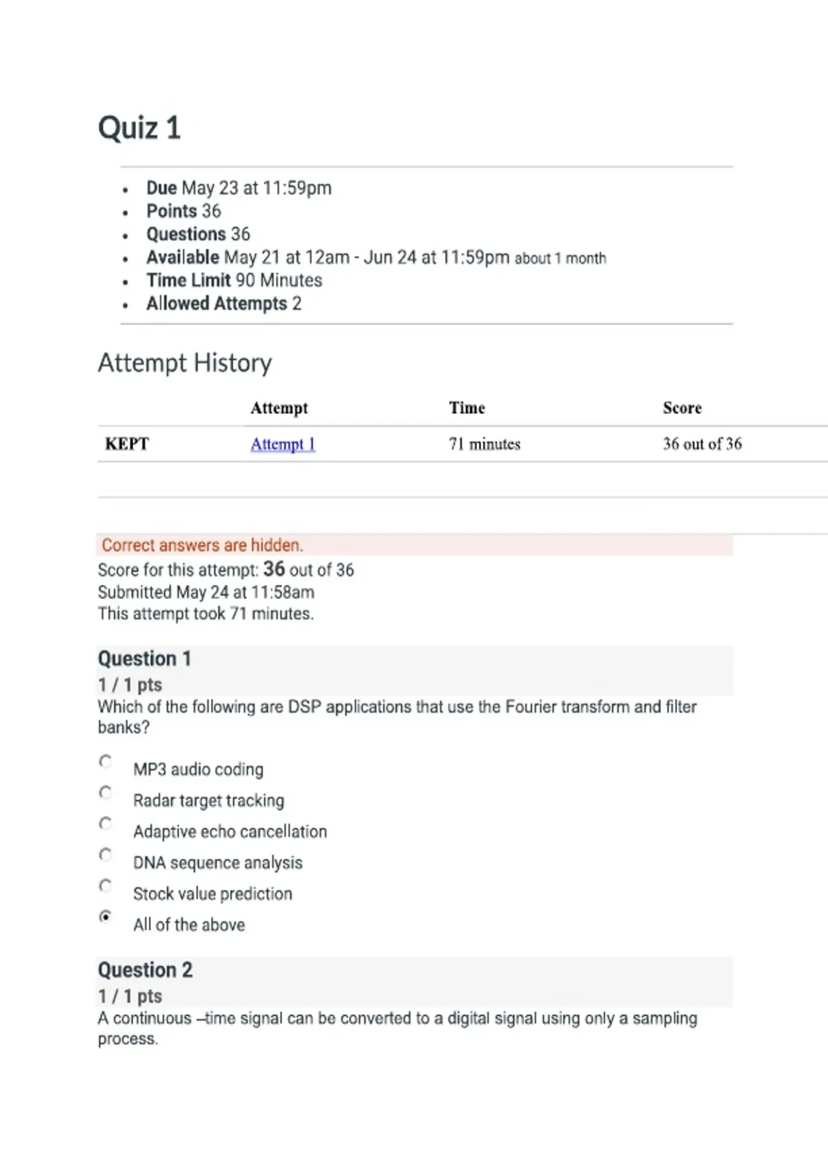 Exam (elaborations) EEE 407 Exam 3| Digital Signal Processing (2021 Spring)| Answered | Updated New edition 2 Exam (elaborations) EEE 407 Exam 1 | Questions and answers | With complete solution | New Edition | updated 3 Exam (elaborations) EEE 407 Exam 2 | With complete solution RATED A+ | UPDATED 100% CORRECT