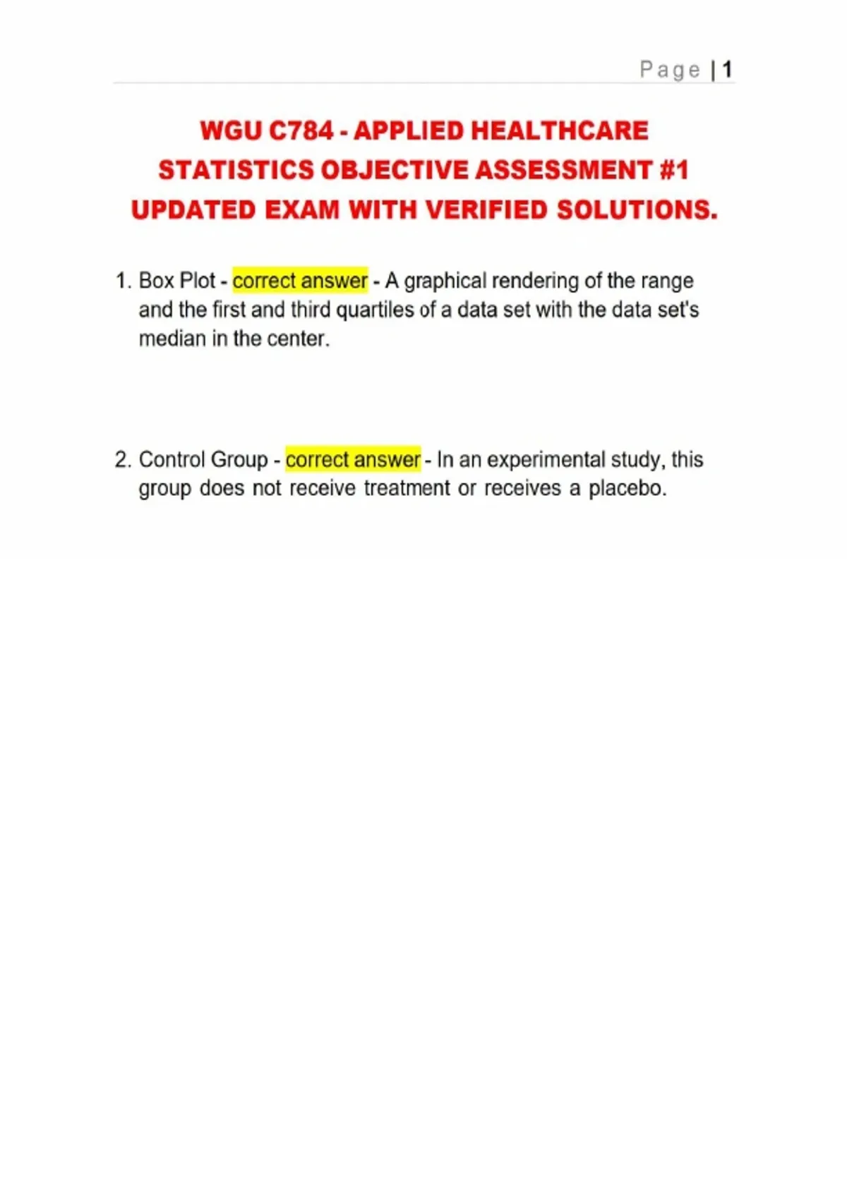 Succeed in your C784 Objective Assessment with the ultimate study bundle. This package includes three comprehensive, high-yield exam prep guides updated for 2026, featuring verified solutions to the most challenging healthcare statistics questions. From probability rules to clinical data visualization, this bundle ensures you have the technical pre