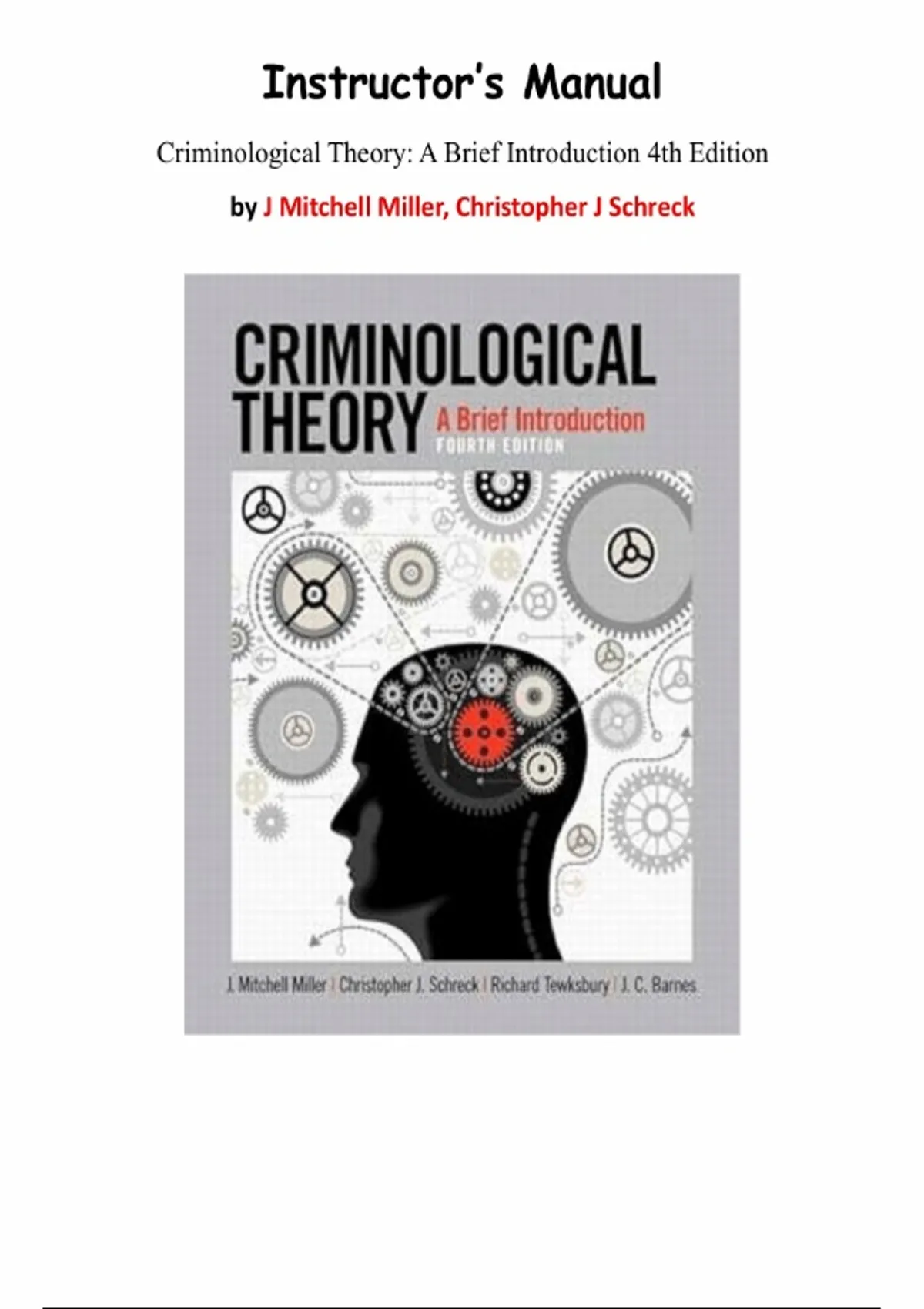 Criminological Theory: A Brief Introduction 4th Edition – J. Mitchell Miller | Instructor’s Manual & Test Bank Package Deal | Chapters 1–10 | Verified & Complete | Latest Update