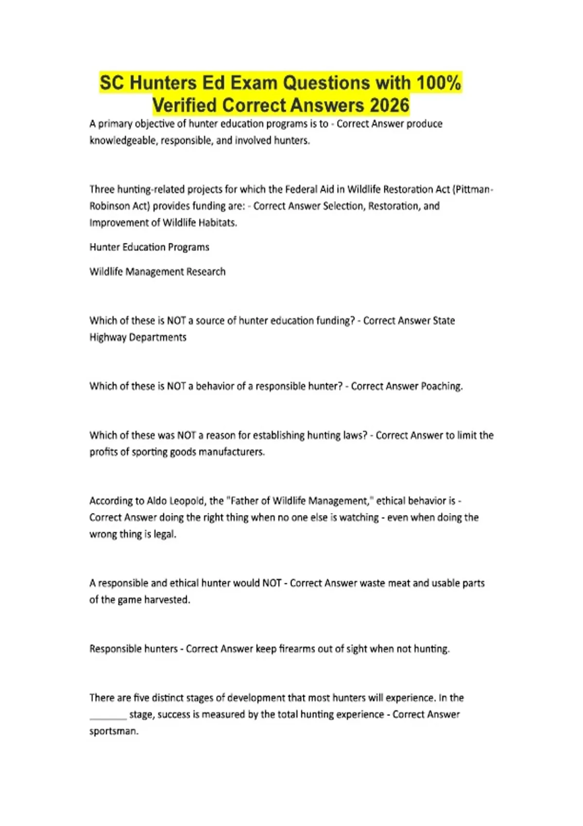 SC Hunters Ed Exam Questions with 100% Verified Correct Answers 2026