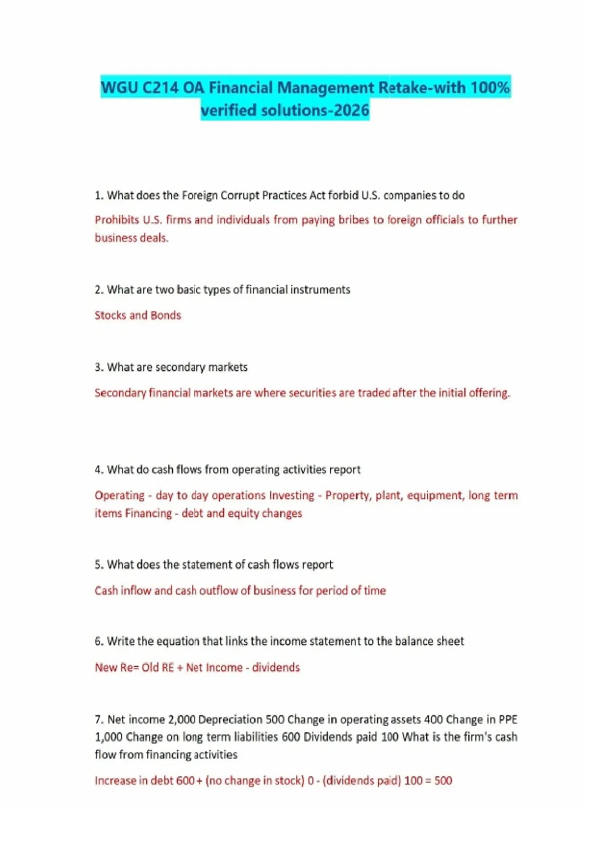 WGU C214 Financial Management OA Retake Bundle: Verified Exam Banks 2026