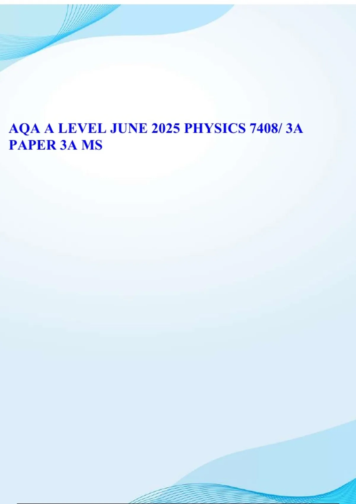 AQA A LEVEL JUNE 2025 PHYSICS 7408/ 3A PAPER 3A AND MARK SCHEME STUDY BUNDLE PACKAGE WITH SOLUTIONS