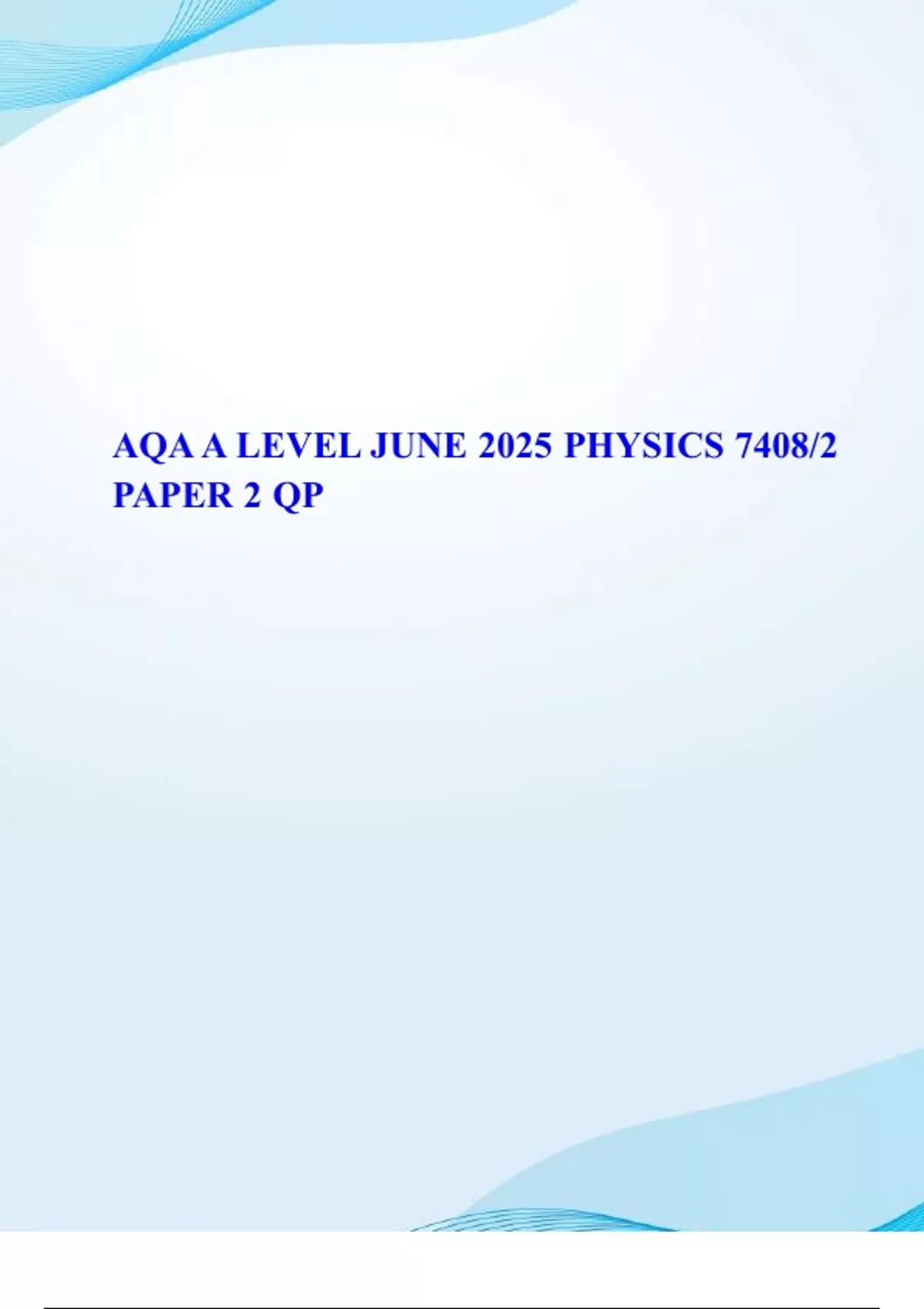 AQA A LEVEL JUNE 2025 PHYSICS 7408/2 PAPER 2 QP
