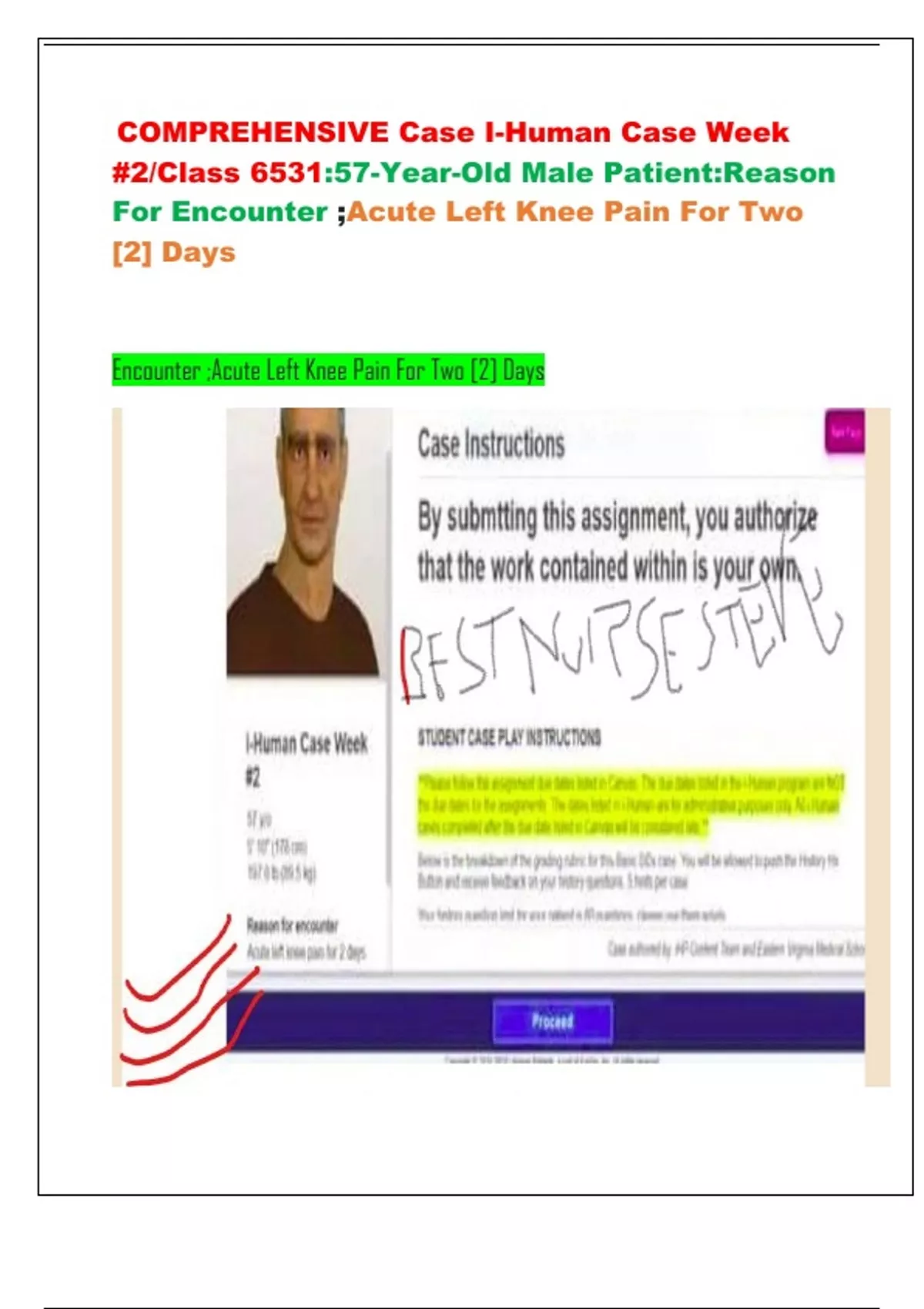 COMPREHENSIVE Case I-Human Case Week #2/Class 6531:57-Year-Old Male Patient:Reason For Encounter ;Acute Left Knee Pain For Two [2] Days Encounter ;Acute Left Knee Pain For Two [2] Days