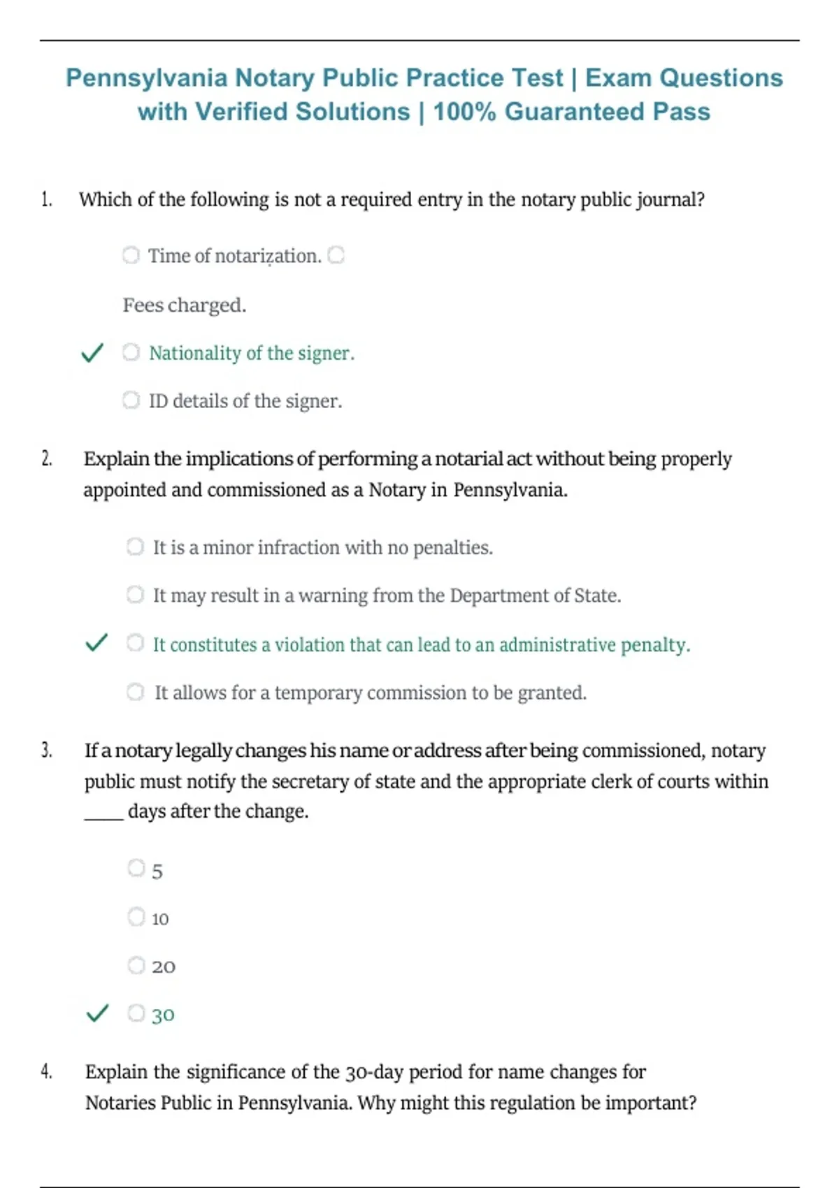 PA Notary Actual Exam Questions with Correct and Detailed Answers | Already Graded A+ 2026/2027 PA Notary Exam – State Test Exam Questions with Verified Solutions | Latest Update 2026/2027 PA Notary Exam Review Questions with Complete Verified Solutions | 2026/2027 A+ Guaranteed Study Guide PA Notary Public Exam Test Questions with Verified Answers