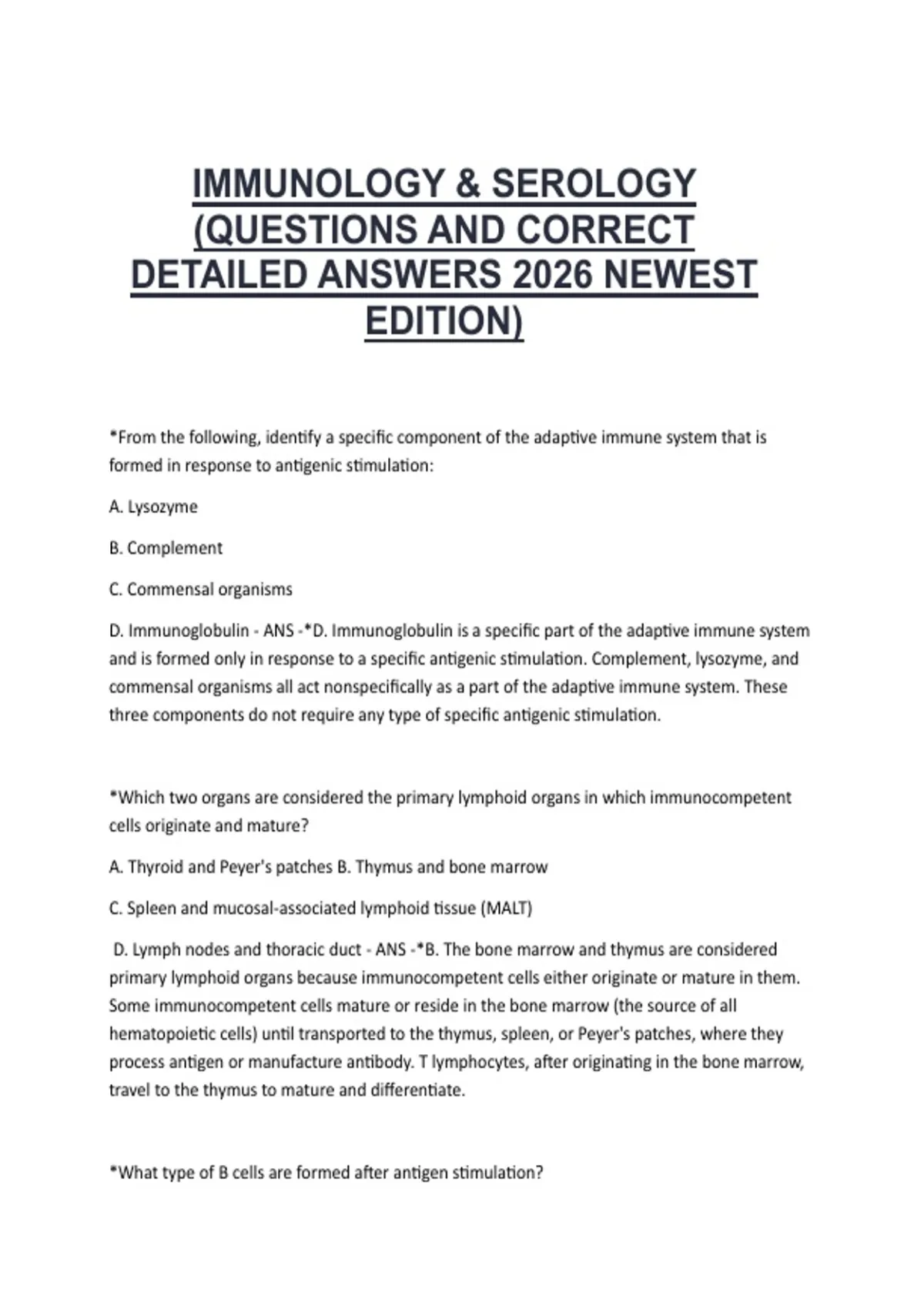 IMMUNOLOGY & SEROLOGY (QUESTIONS AND CORRECT DETAILED ANSWERS 2026 NEWEST EDITION)