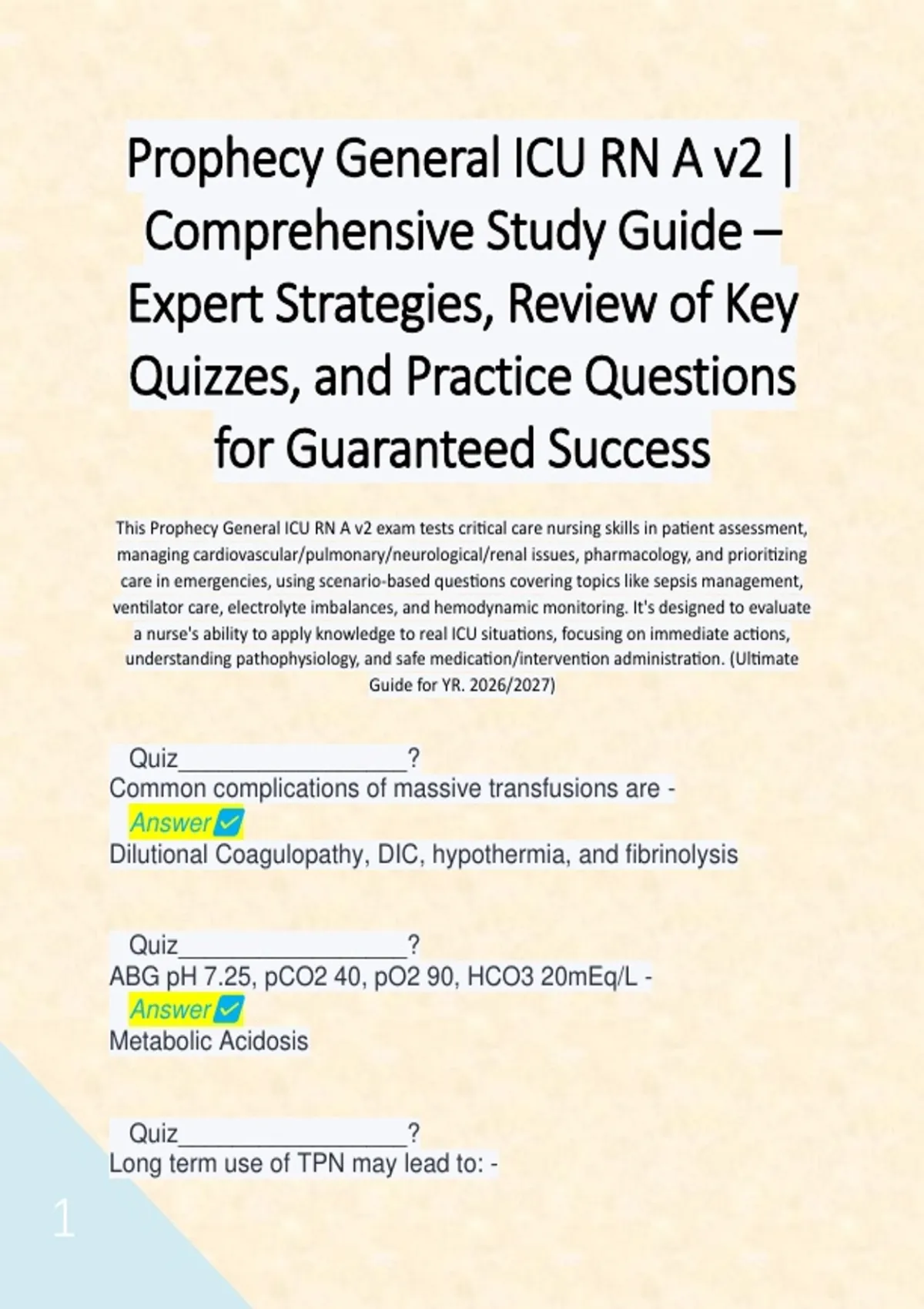 1 Exam (elaborations) Prophecy General ICU RN A v2 | Comprehensive Study Guide – Expert Strategies, Review of Key Quizzes, and Practice Questions for Guaranteed Success This Prophecy General ICU RN A v2 exam tests critical care nursing skills in patient assessment, managing 2 Exam (elaborations) Prophecy General ICU RN A v3 | Comprehensive Study G