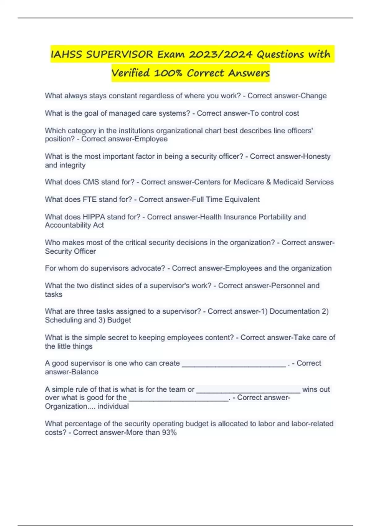 IAHSS Basic Officer and Supervisor Exam Q & A