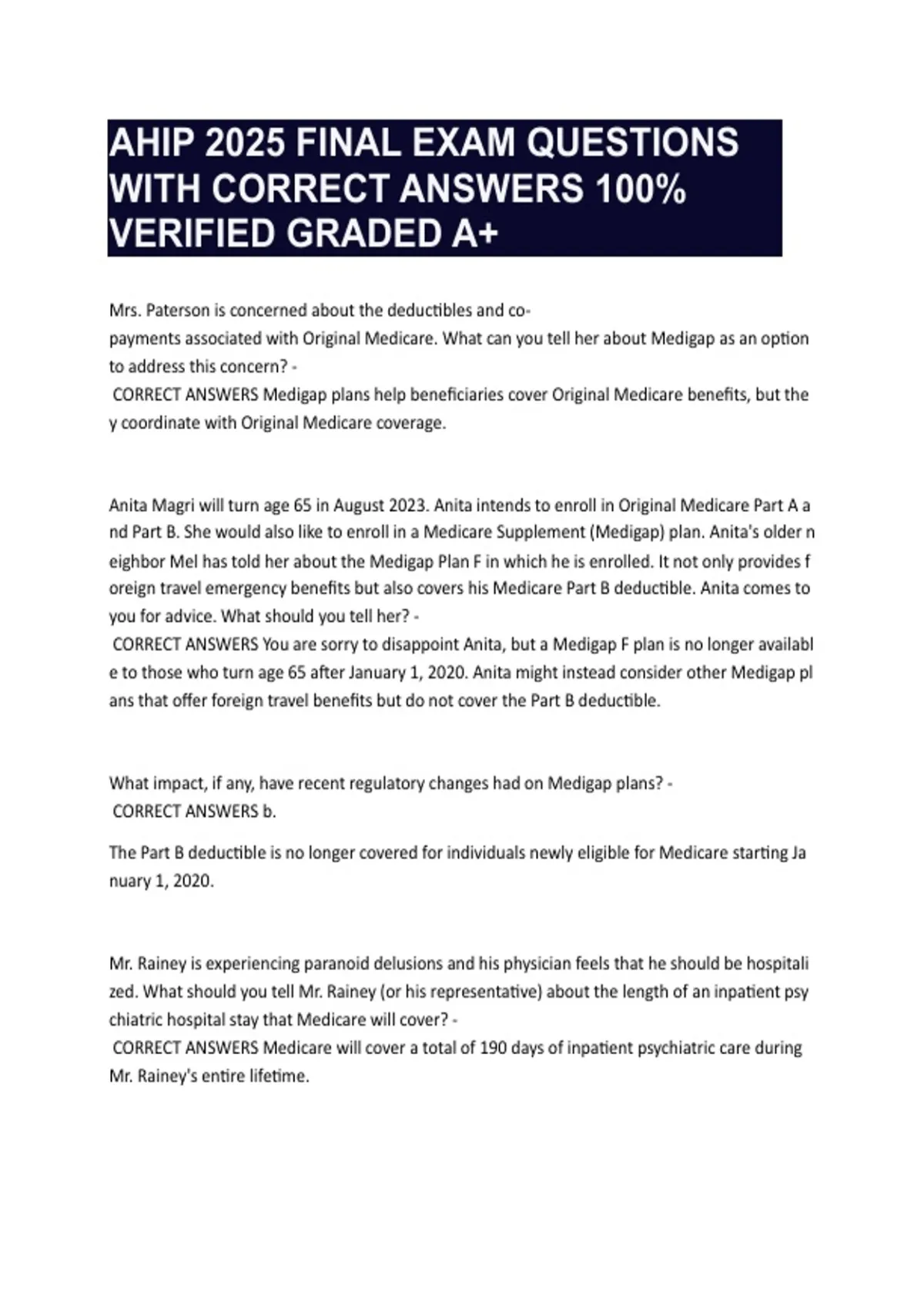 AHIP FINAL EXAM QUESTIONS WITH CORRECT ANSWERS 100% VERIFIED GRADED A+