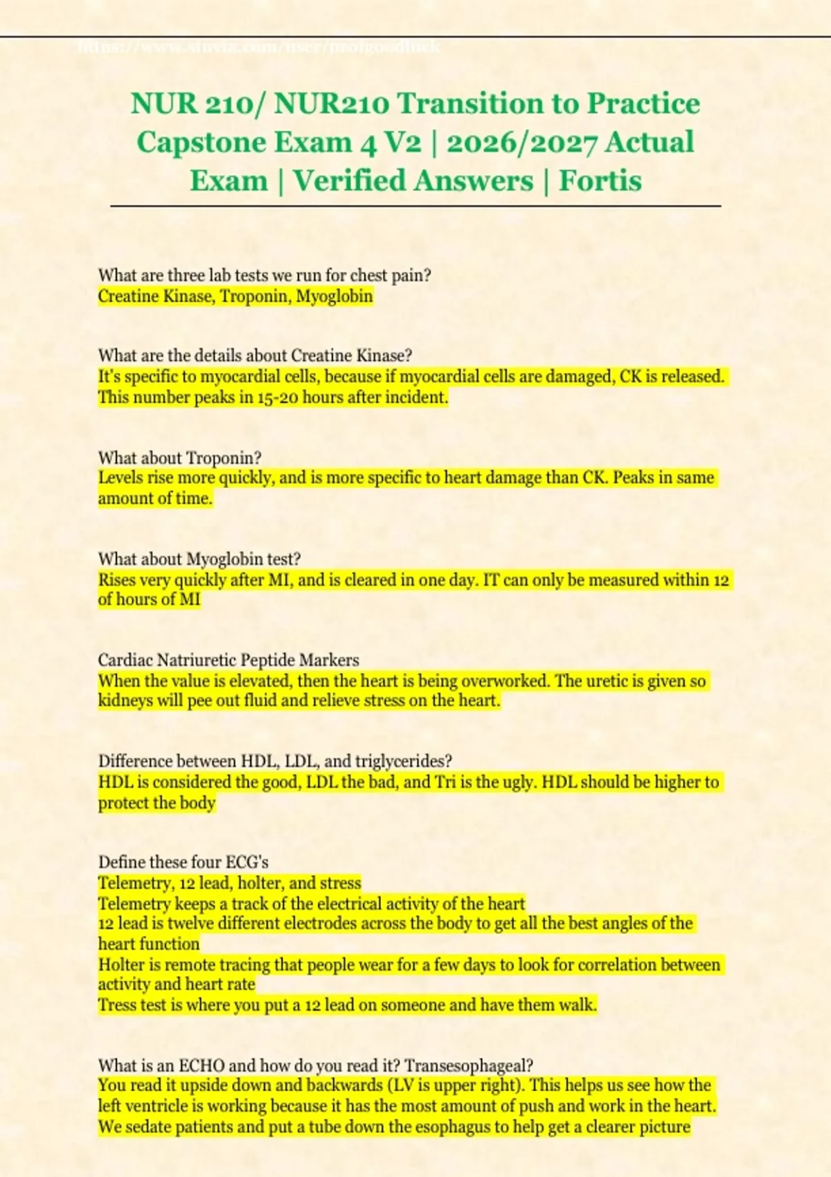 Fortis NUR 210/ NUR210 Exam 3 V2 | Transition to Practice Capstone (2026/2027) | Real Exam Q&A | Grade A