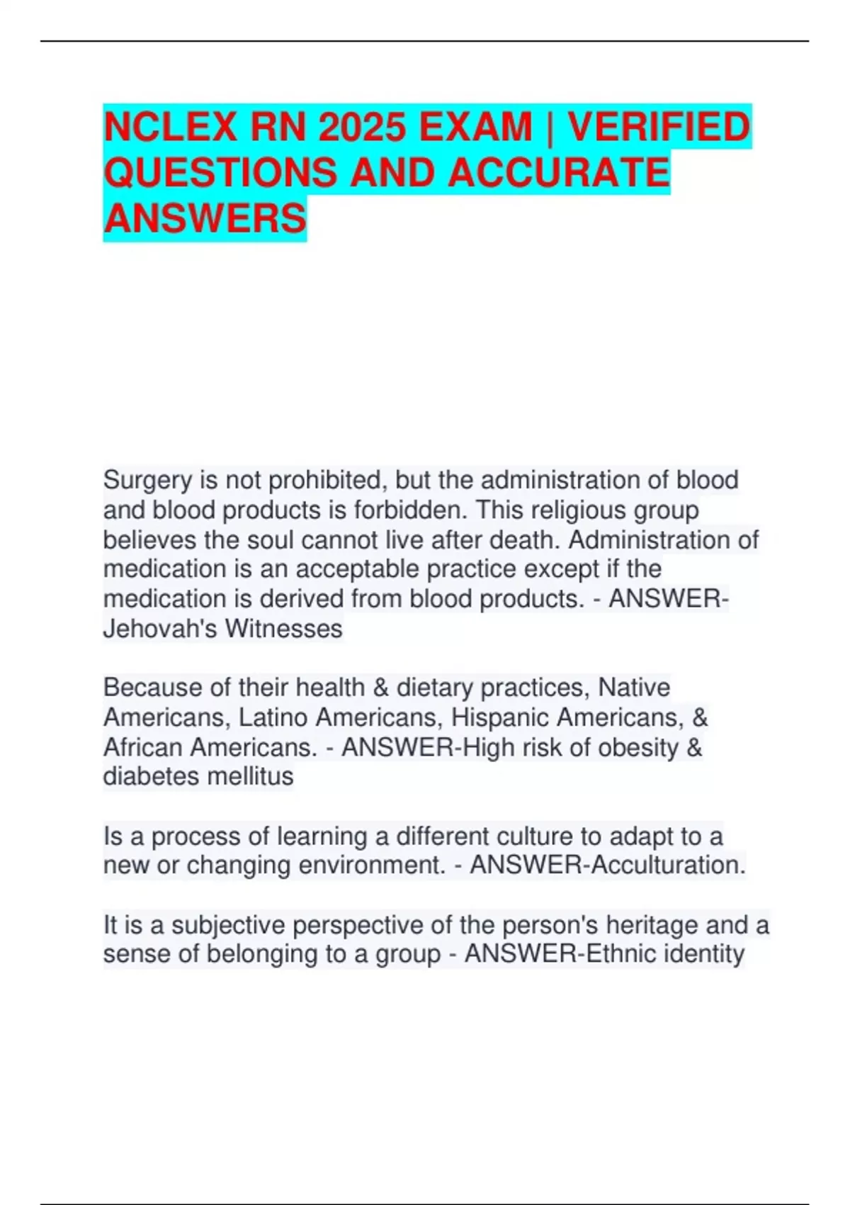 NCLEX RN 2025 EXAM | VERIFIED QUESTIONS AND ANSWERS