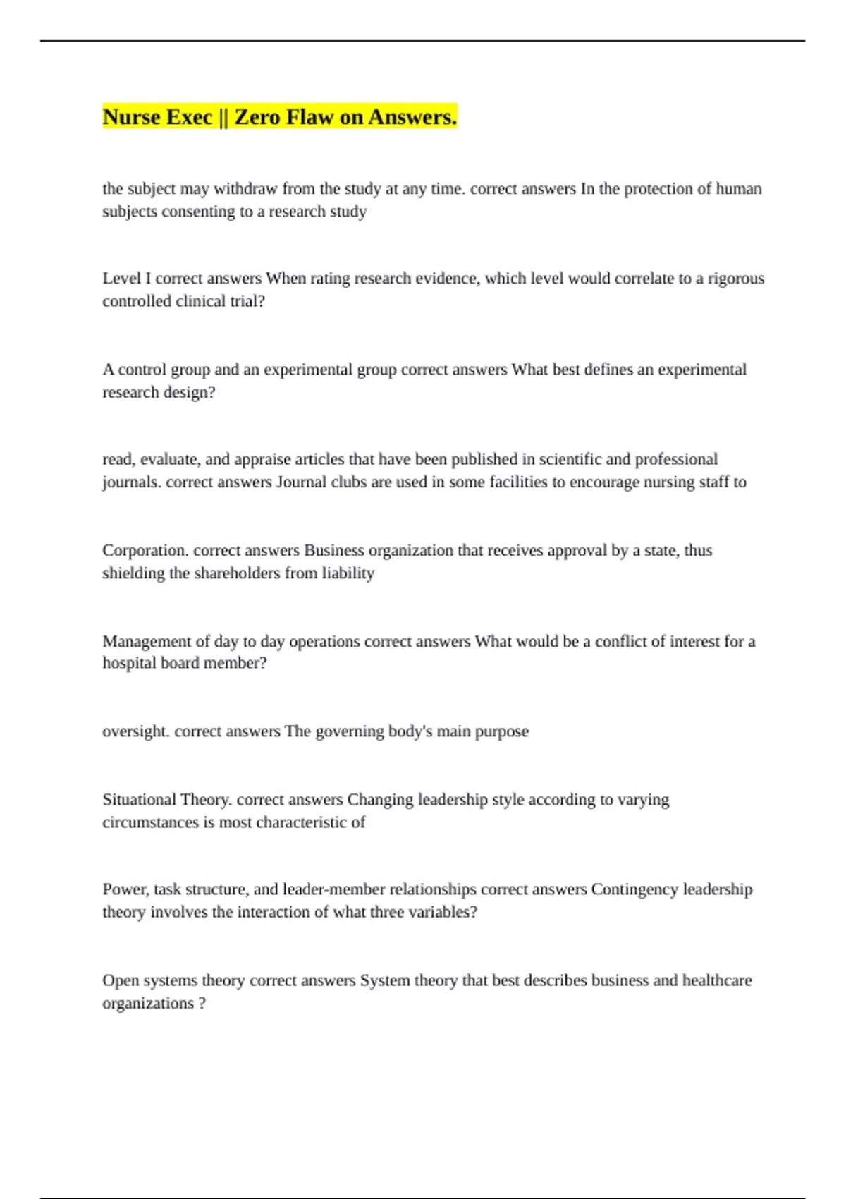 Nurse Executive || With Correct Answers. Nurse Exec || Zero Flaw on Answers. Nurse Executive Certification || 100% Accurate Solutions. Nurse Executive Practice Test 4 || with Errorless Answers.