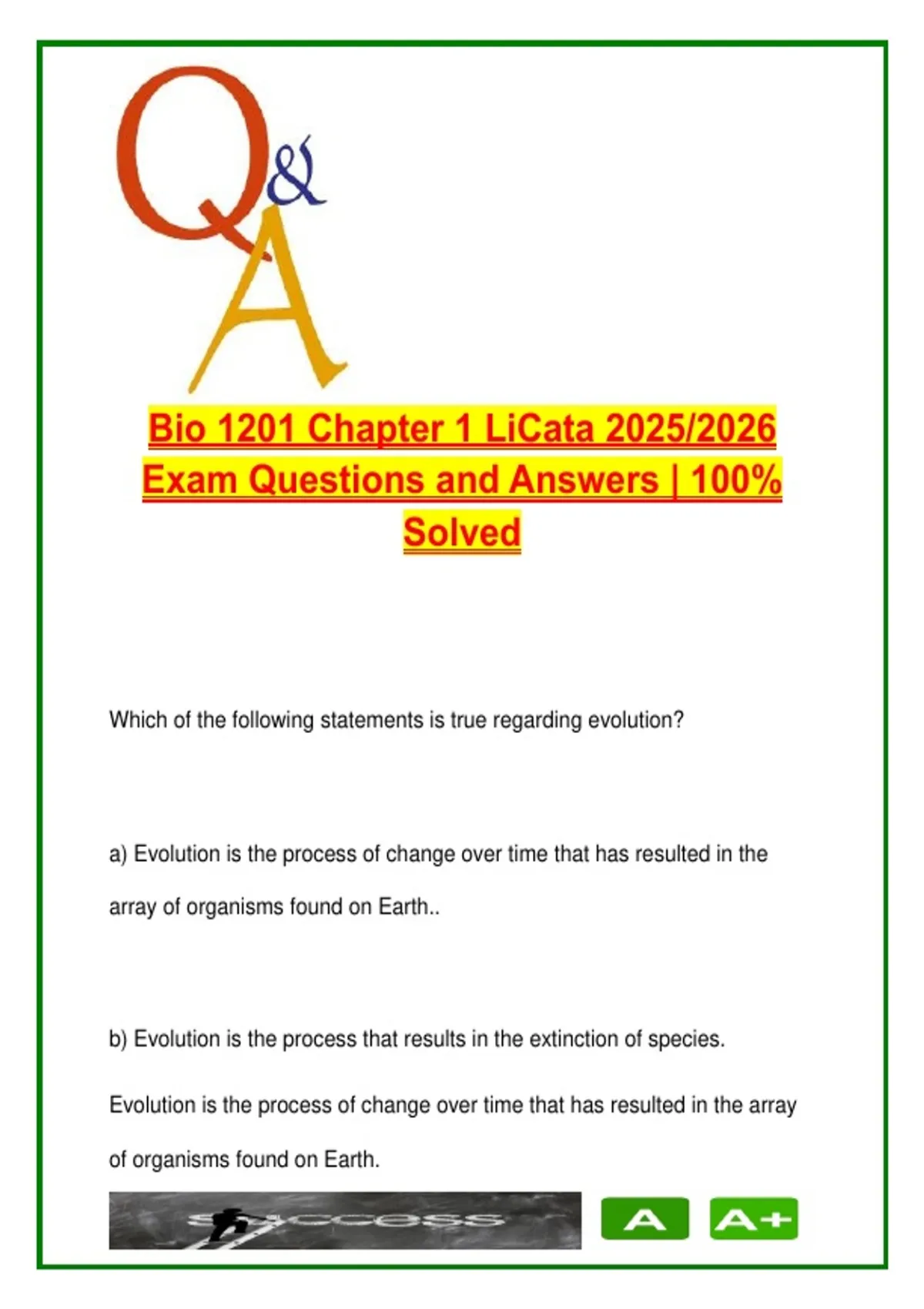 BIO 1201 EXAM COMPLETE PACKAGE DEAL