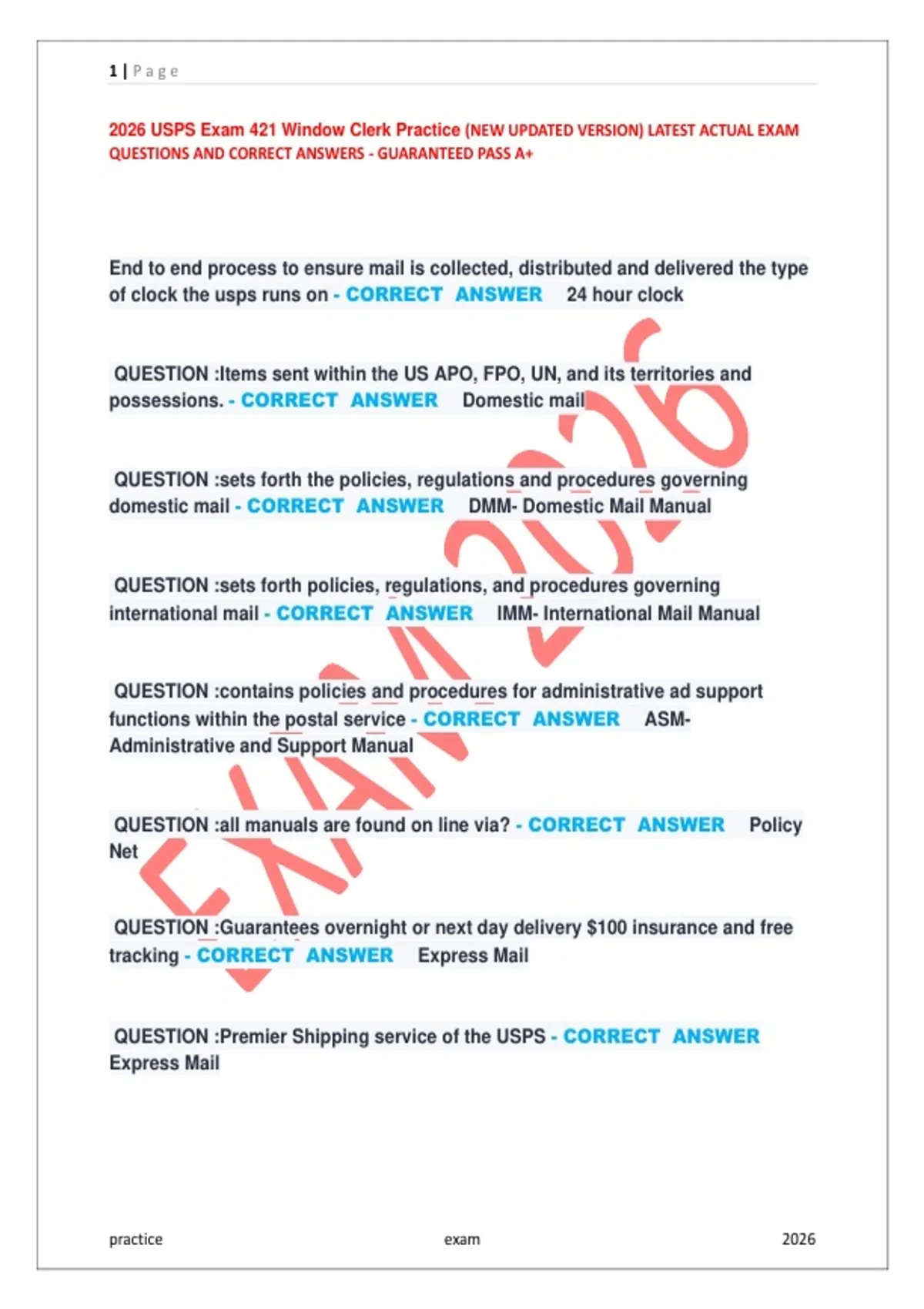1 Exam (elaborations) 2026 USPS Exam 421 Window Clerk Practice – NEW Updated Version | Latest Actual Questions & Correct Answers | Guaranteed Pass A+ 2 Exam (elaborations) 2026 USPS Exam 421 Window Clerk Practice – NEW Updated Version | Latest Actual Questions & Correct Answers | Guaranteed Pass A+ 3 Exam (elaborations) 2026 USPS Exam 421 Window