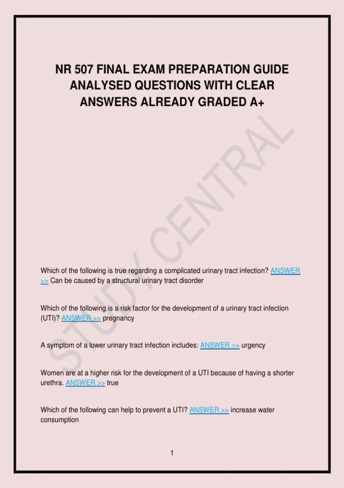 ______INSTANT PDF DOWNLOAD _____ This NR507 Advanced Pathophysiology exam preparation guide includes bundled, exam-focused questions with 100% correct answers graded A+. It comprehensively covers core pathophysiology topics, clinical correlations, and high-yield concepts essential for exam success.