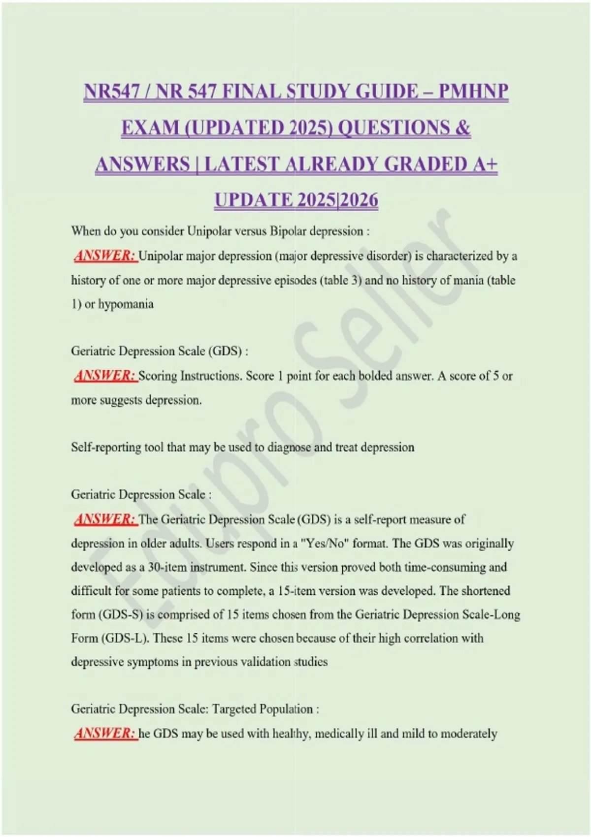 NR 547 FINAL EXAM STUDY BUNDLE ACTUAL EXAM TEST BANK 200 QUESTIONS AND CORRECT DETAILED ANSWERS WITH RATIONALES (VERIFIED ANSWERS)