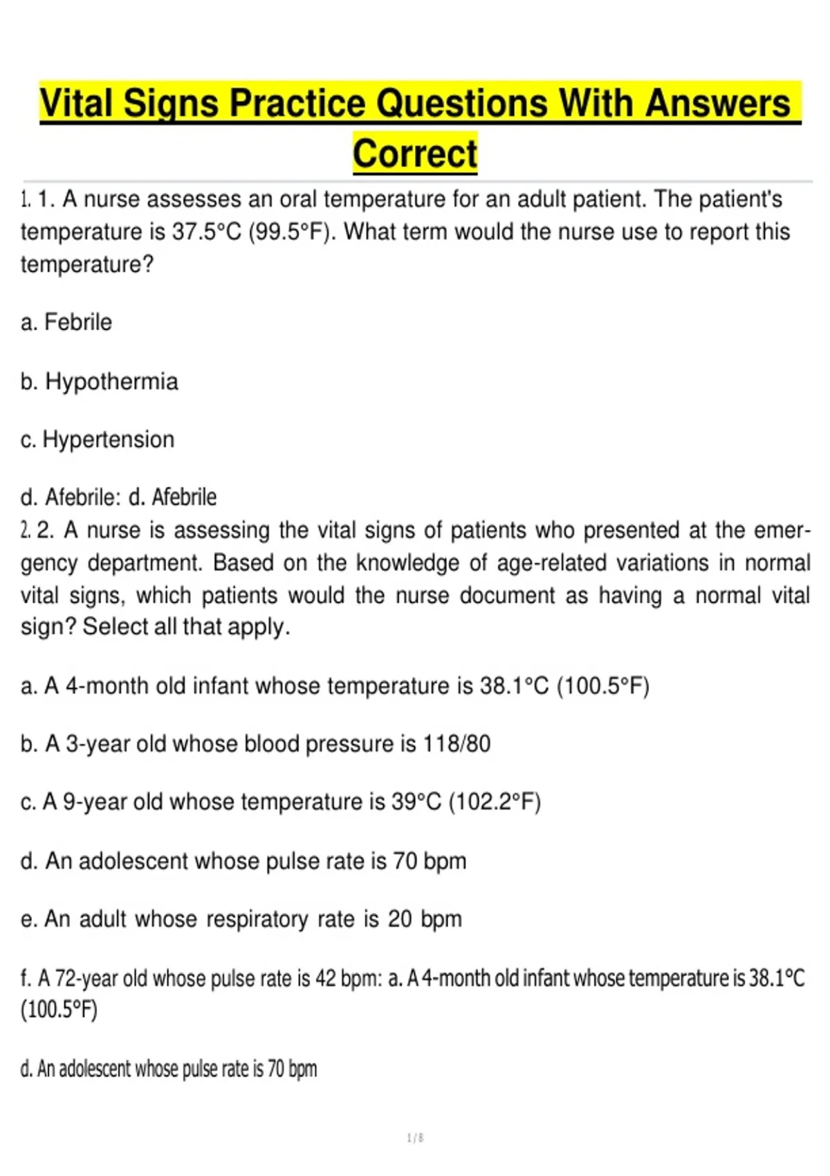 NURSING EXAM QUESTIONS WITH ANSWERS CORRECT
