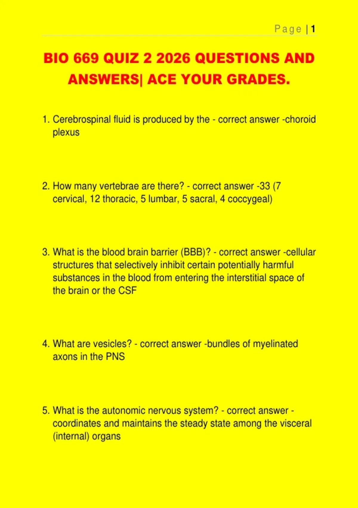 BIO 669 QUIZ 1, 2, 3, 4, 5 AND 6 EXAMS PACKAGE DEAL 2026 QUESTIONS AND ANSWERS| ACE YOUR GRADES.