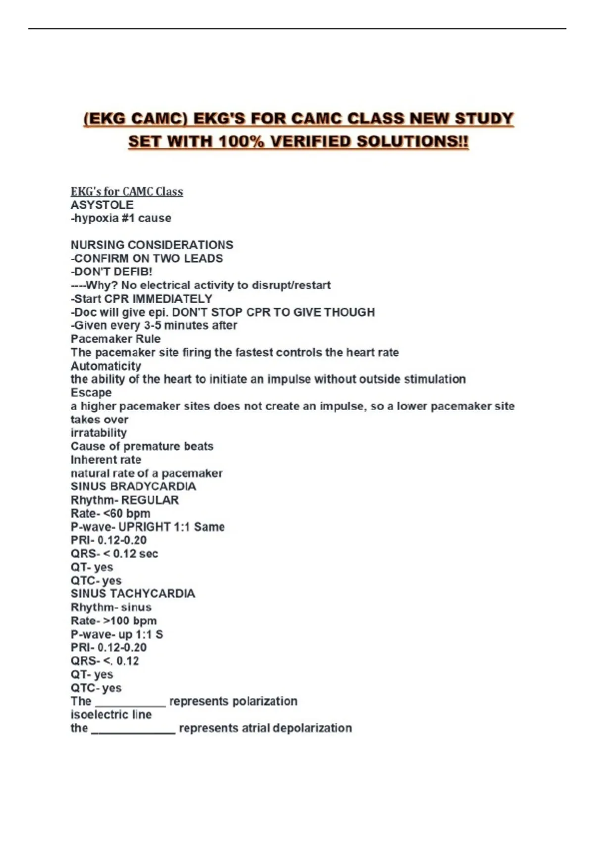(EKG CAMC) EKG'S FOR CAMC CLASS NEW STUDY SET WITH 100% VERIFIED SOLUTIONS!!