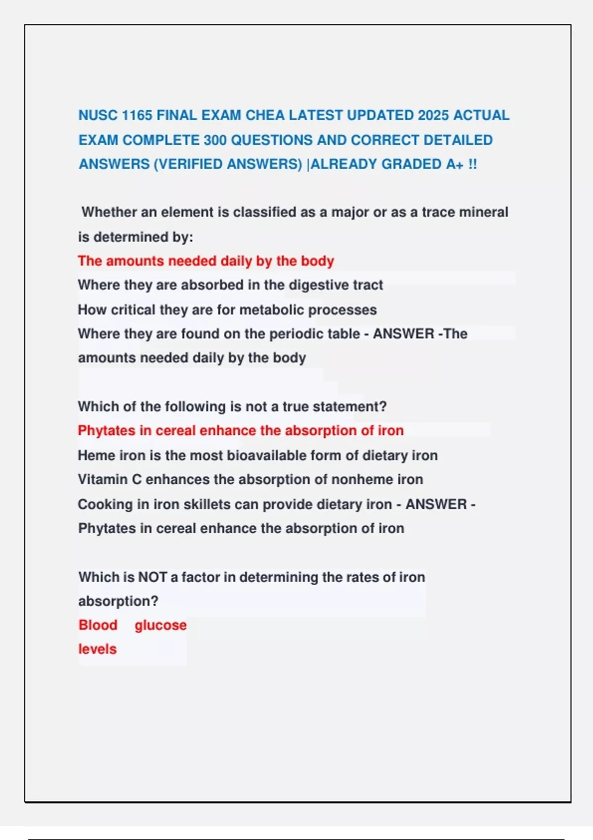 NUSC 1165 FINAL EXAM CHEA LATEST UPDATED 2025 ACTUAL EXAM COMPLETE 300 QUESTIONS AND CORRECT DETAILED ANSWERS NUSC 1165: Final Guide Exam || Most Recent Exam 2026 Actual Complete Real Exam Questions And Correct Answers nusc 1165 final exam chea Exam || Most Recent Exam 2026 Actual Complete Real Exam Questions And Correct Answers