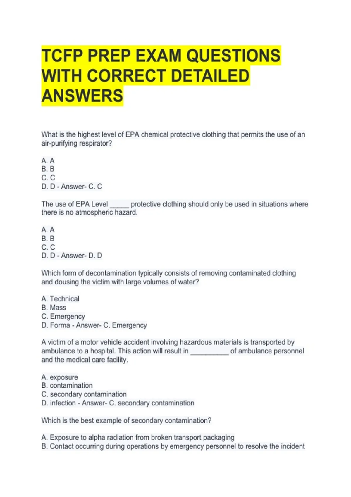 1 Exam (elaborations) TCFP PREP EXAM QUESTIONS WITH CORRECT DETAILED ANSWERS 2 Exam (elaborations) TCFP FIELD EXAMINER COURSE QUESTIONS WITH COMPLETE SOLUTIONS 3 Exam (elaborations) TCFP INSPECTOR’S CLASS EXAM QUESTIONS WITH CORRECT ANSWERS 4 Exam (elaborations) Fire Investigator - Master for TCFP Test Questions with Correct Answers 5 Exam (ela
