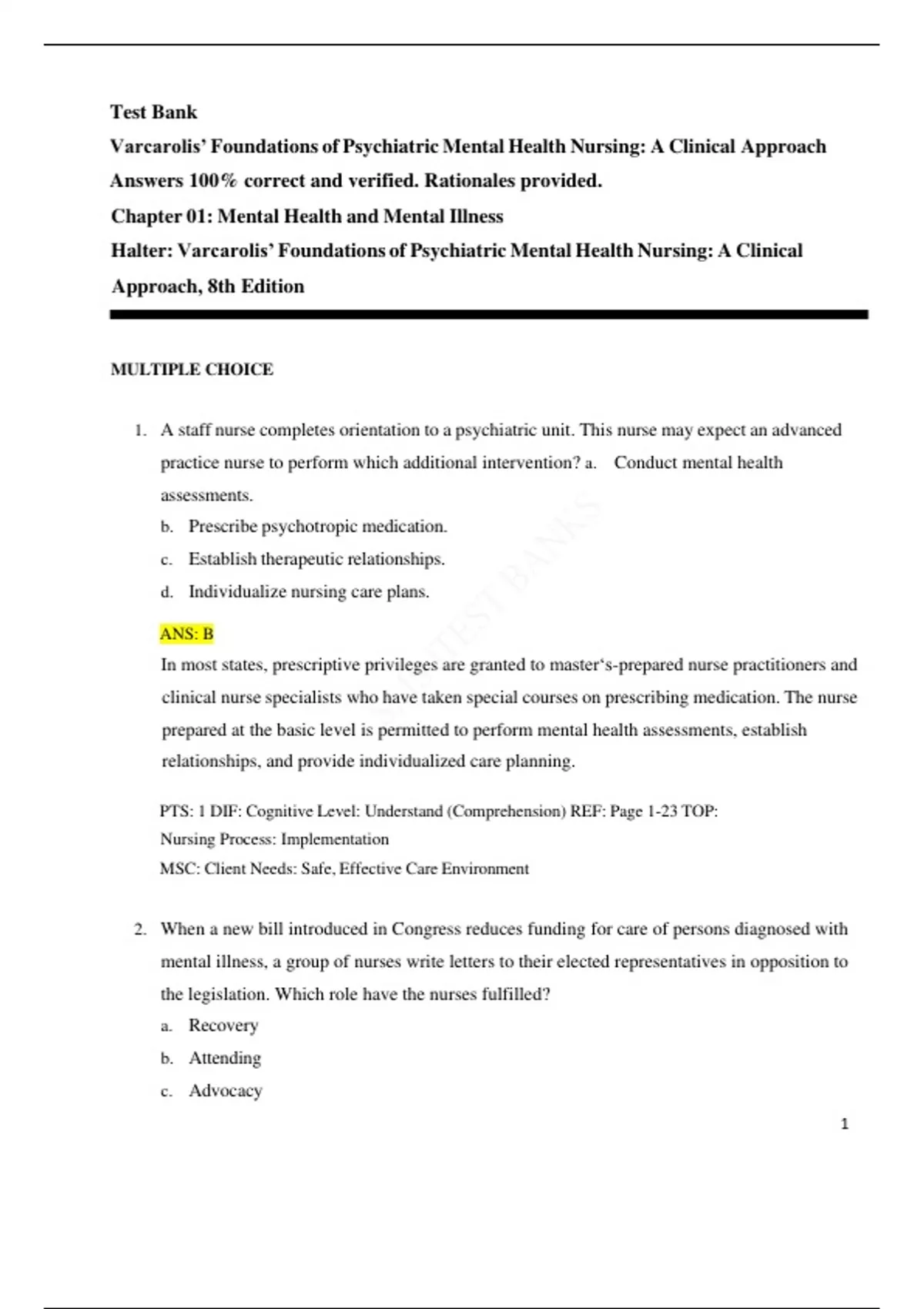 TEST BANK For Psychiatric Mental Health Nursing, 9th Edition by Sheila L. Videbeck | (ISBN 9781975184773) | All Chapters Included | Complete Guide.