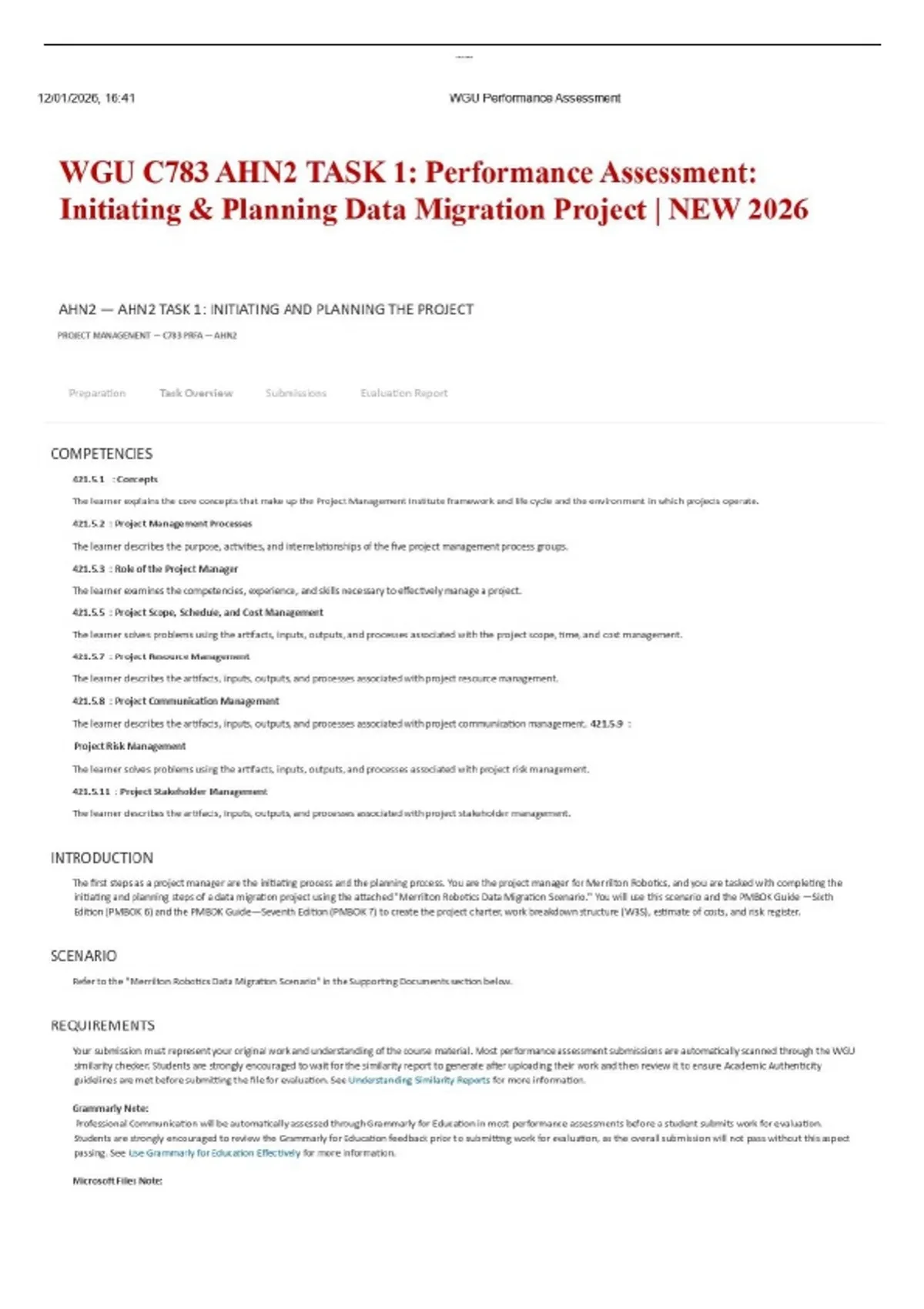 WGU C783 AHN2 TASK 1: Performance Assessment: Initiating & Planning Data Migration Project | NEW 2026