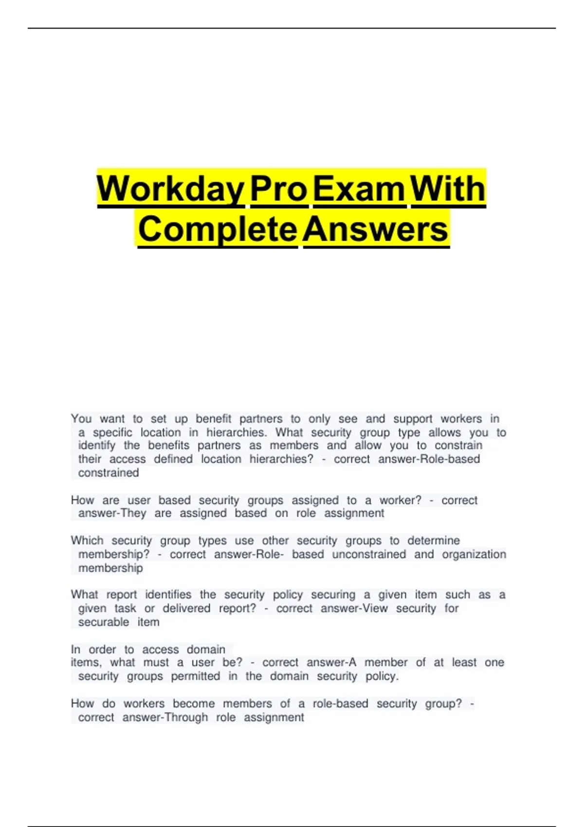 WORKDAY PRO EXAM QUESTIONS WITH ANSWERS CORRECT