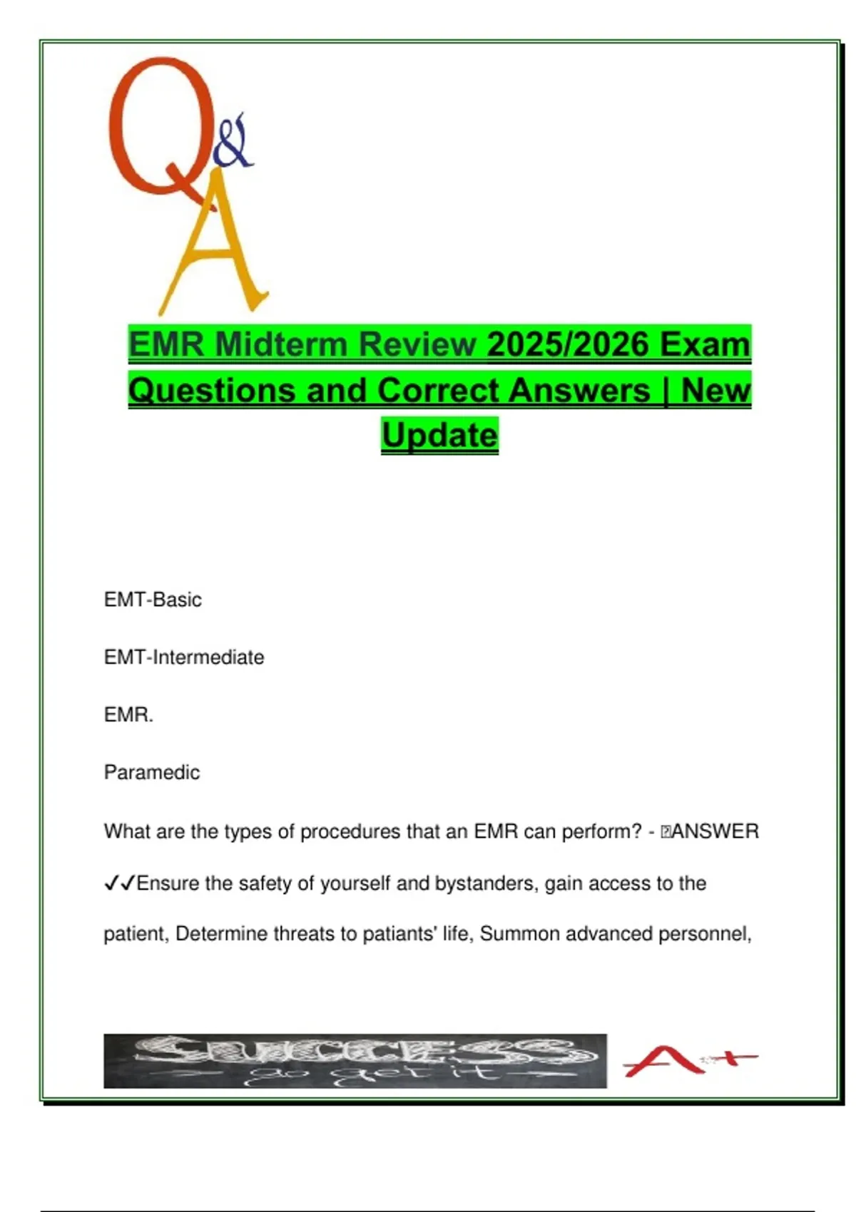 EMR Midterm Review 2025 – 250+ Verified Q&A on EMS Systems, Anatomy, Consent, Airway & Scene Safety | Emergency Medical Response