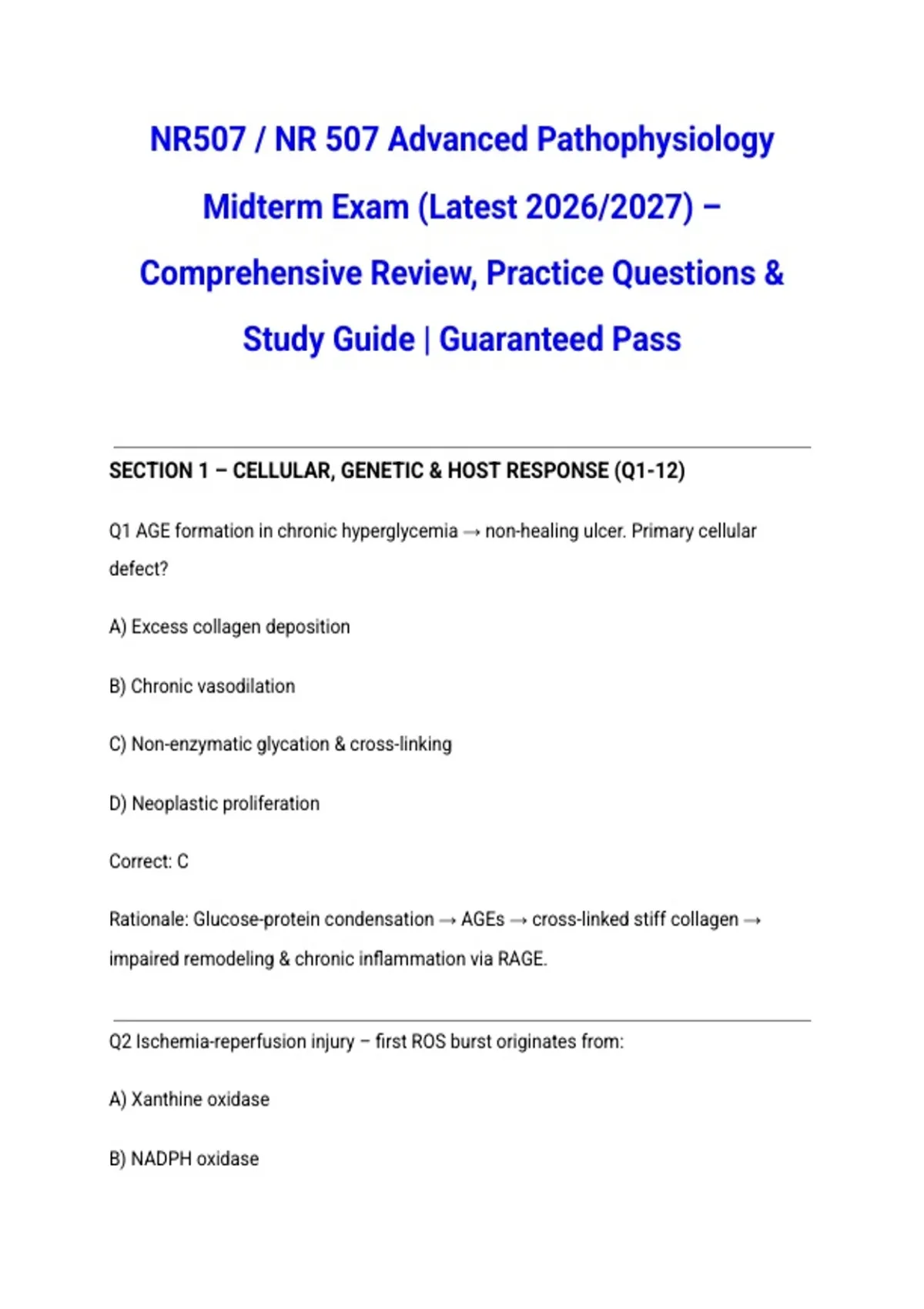 NR507 / NR 507 Advanced Pathophysiology Midterm & Final Exams Bundle (Latest 2026/2027) – Complete Study Package, Questions & Verified Answers | 100% Correct | Grade A – Chamberlain College