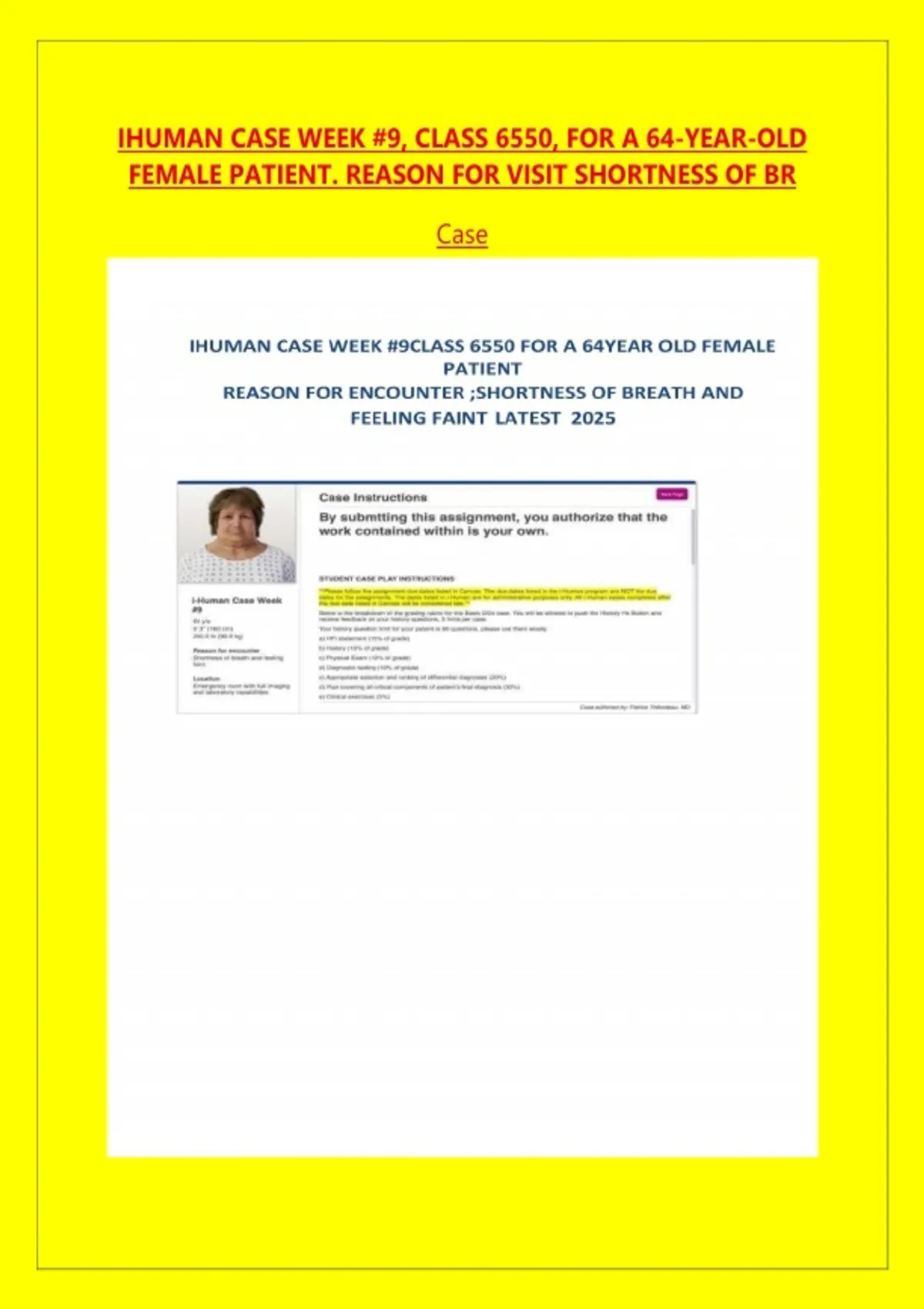 WEEK #9, CLASS 6550, FOR A 64-YEAR-OLD FEMALE PATIENT. REASON FOR VISIT SHORTNESS OF BR Case