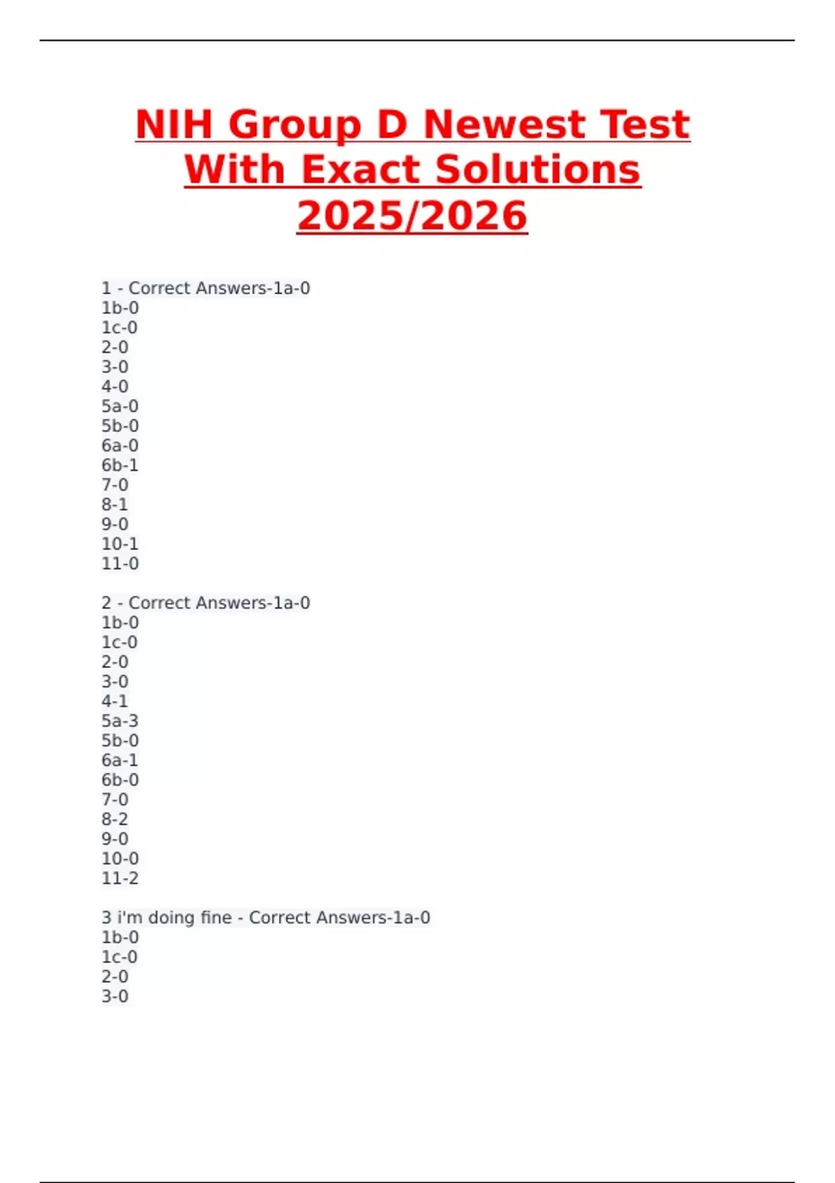 NIH Group D Newest Test 2025/2026 – Exact Solutions for Recruitment Exam Preparation