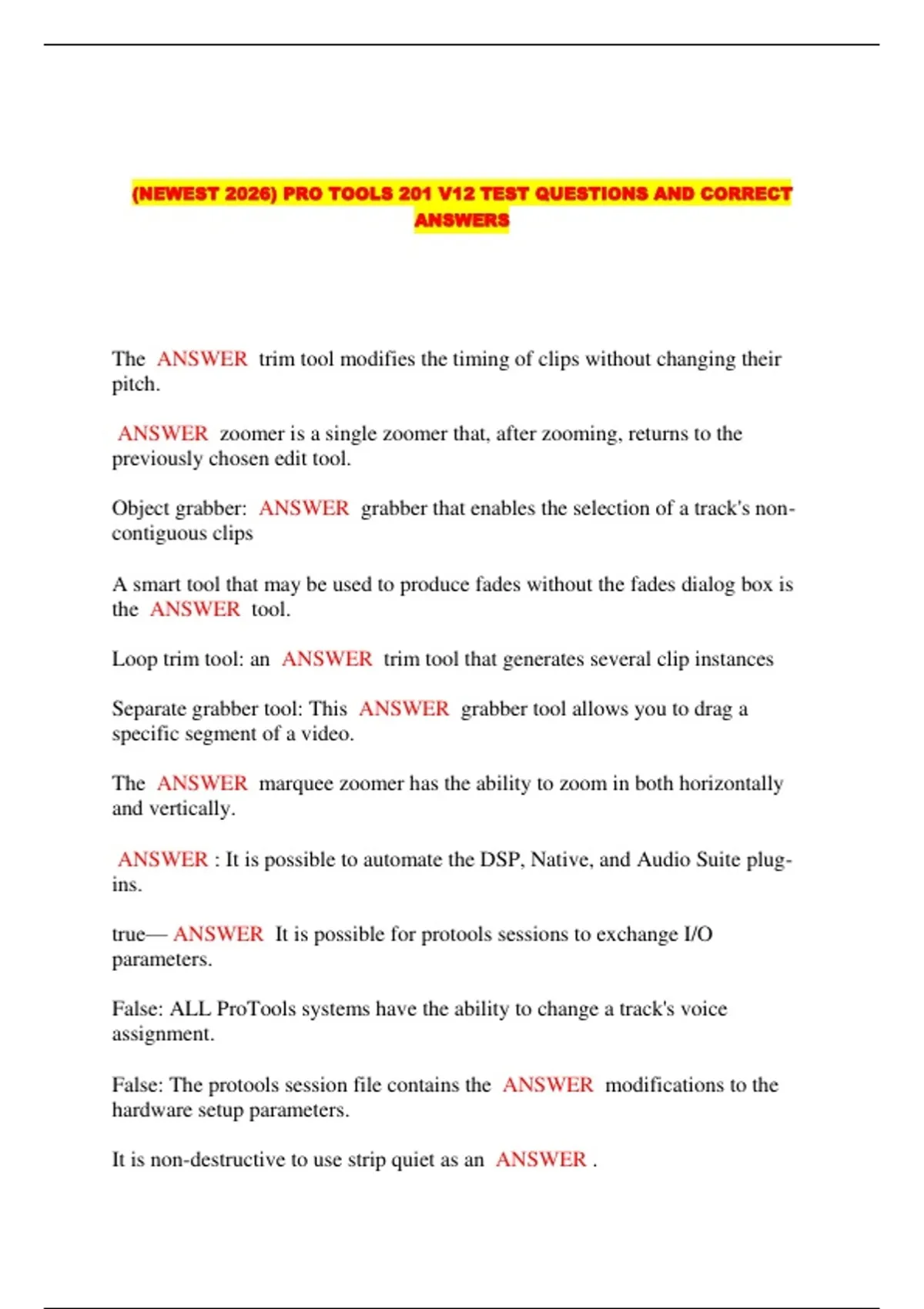 PRO TOOLS 201 VERIFIED QUESTIONS AND ANSWERS FOR EASY EXAM PASS