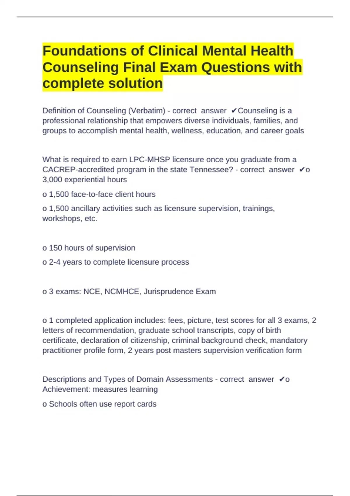 1 Exam (elaborations) Question Bank Q s - Psychopathology (PSY3171) Question and answers correctly solved 2025/2026 2 Exam (elaborations) Fitzgerald Mental Health - chpt 14 Question and answers verified to pass 2025 3 Exam (elaborations) Foundations of Clinical Mental Health Midterm Question and answers already passed 2025/2026 4 Exam (elaborations