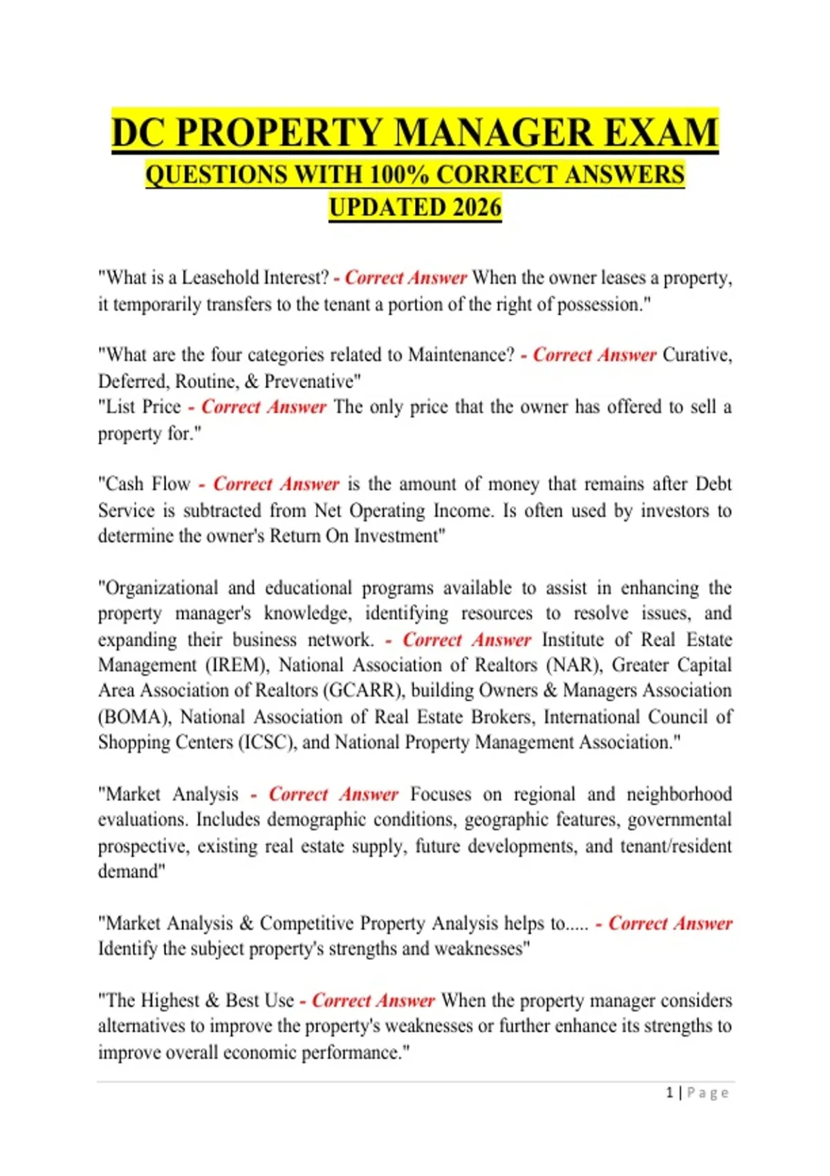 DC PROPERTY MANAGERS STUDY GUIDE QUESTIONS WITH CORRECT ANSWERS 2026