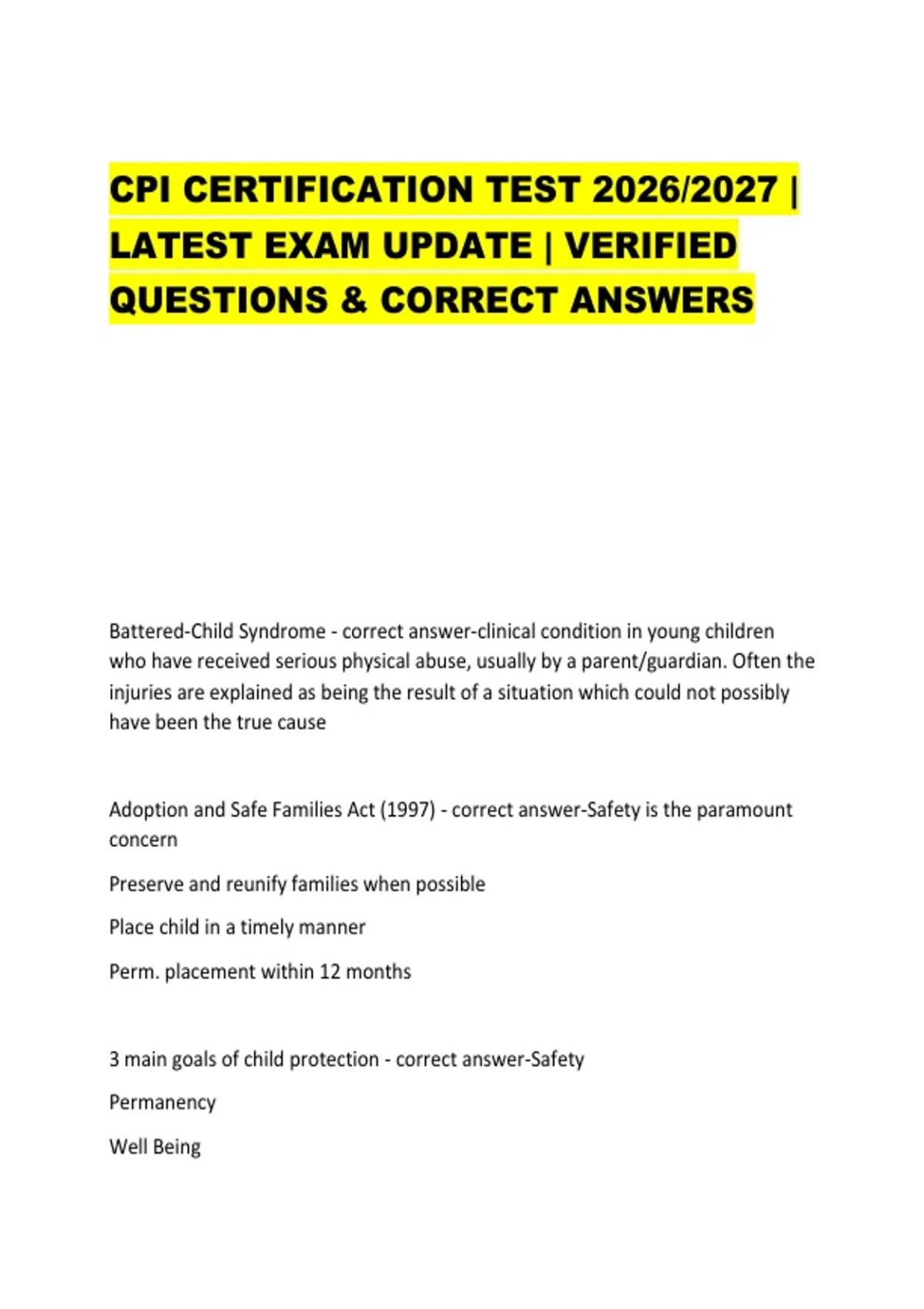 CPI CERTIFICATION TEST 2026/2027 | LATEST EXAM UPDATE | VERIFIED QUESTIONS & CORRECT ANSWERS